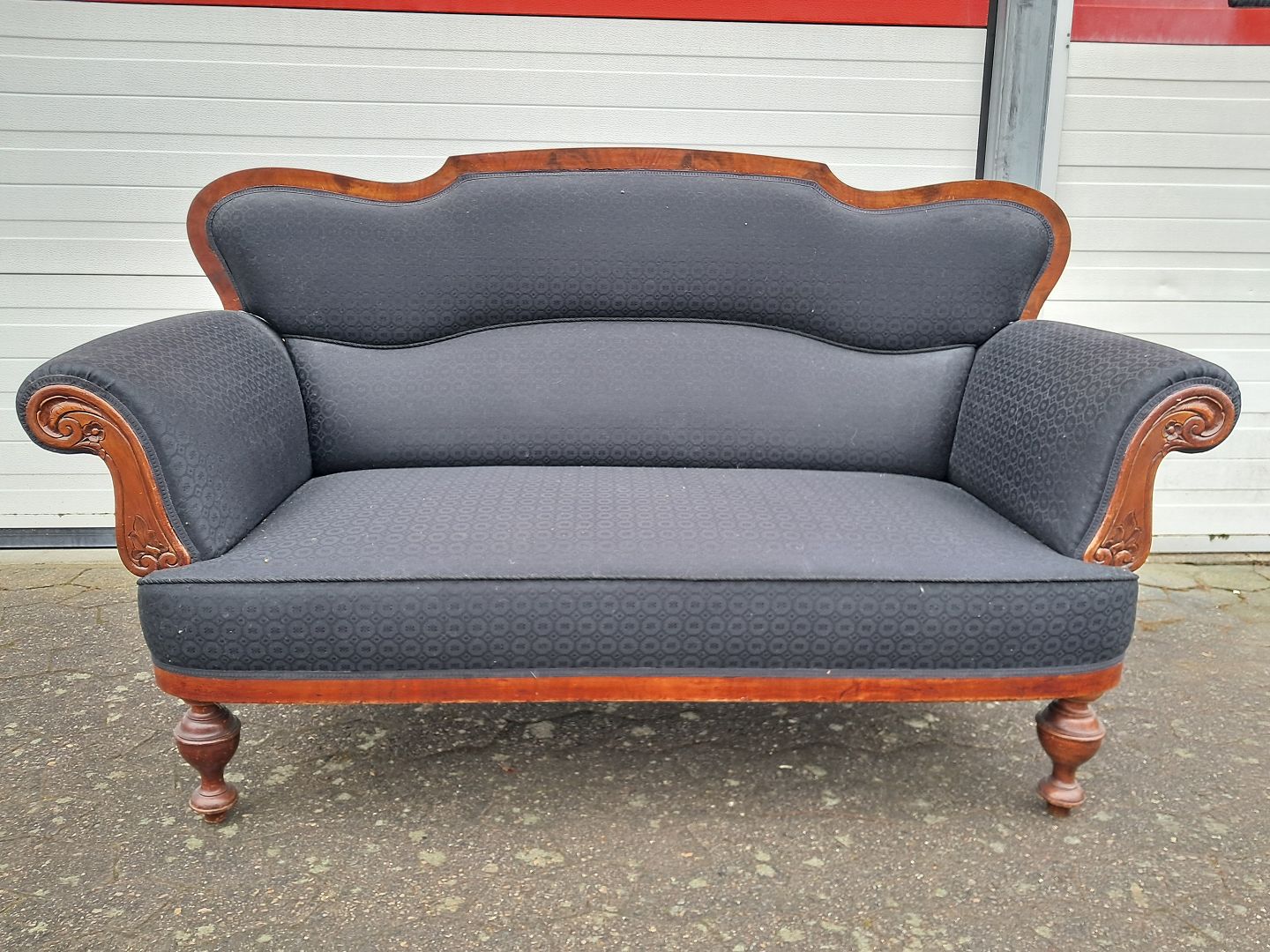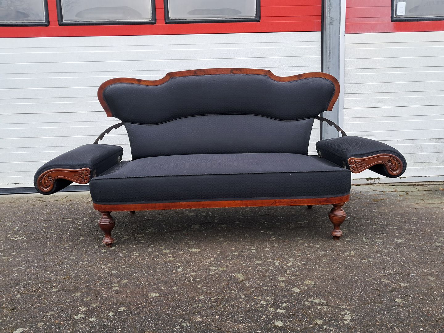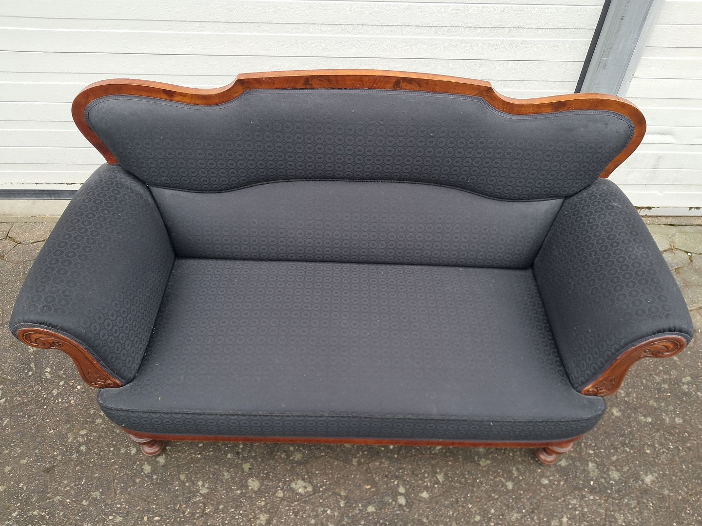Salonsofa i fineret mahogni, fra 1900erne.