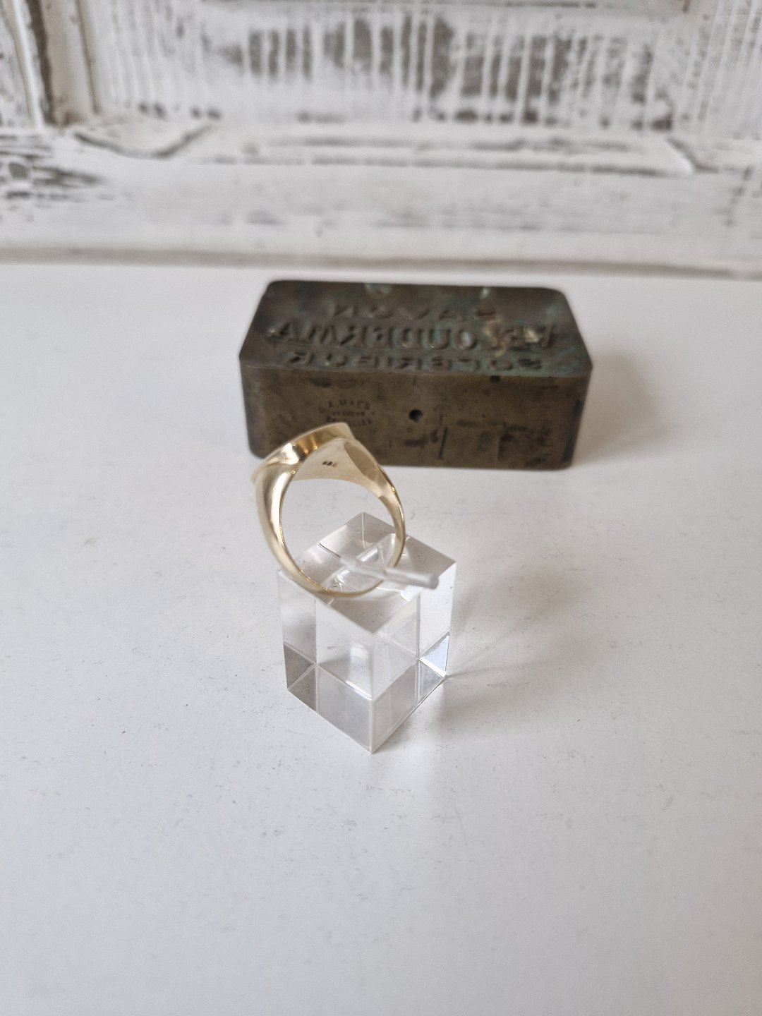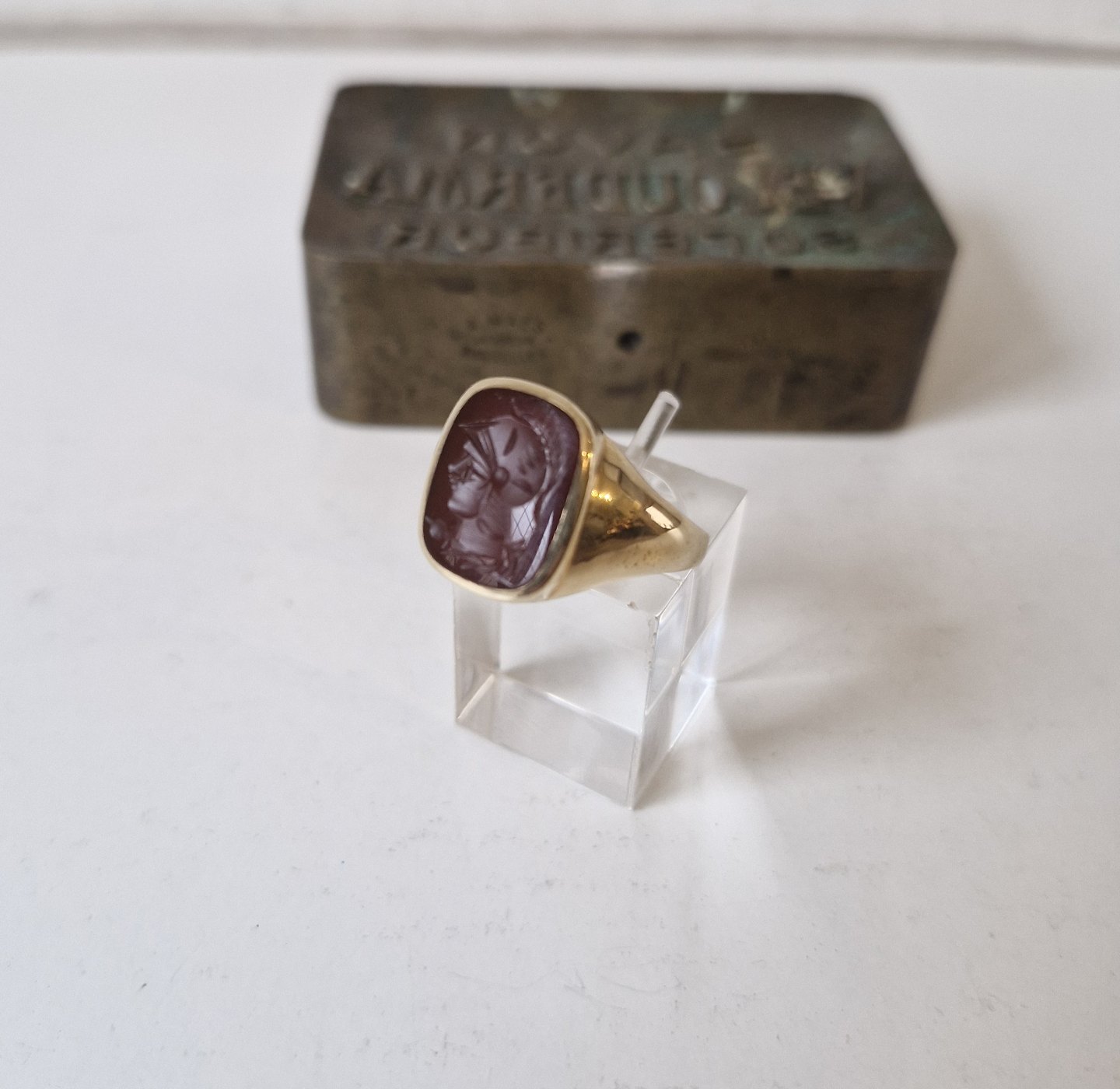 Vintage herrering i 14 kt guld med karneol plade udskåret med dekoration af romersk soldat