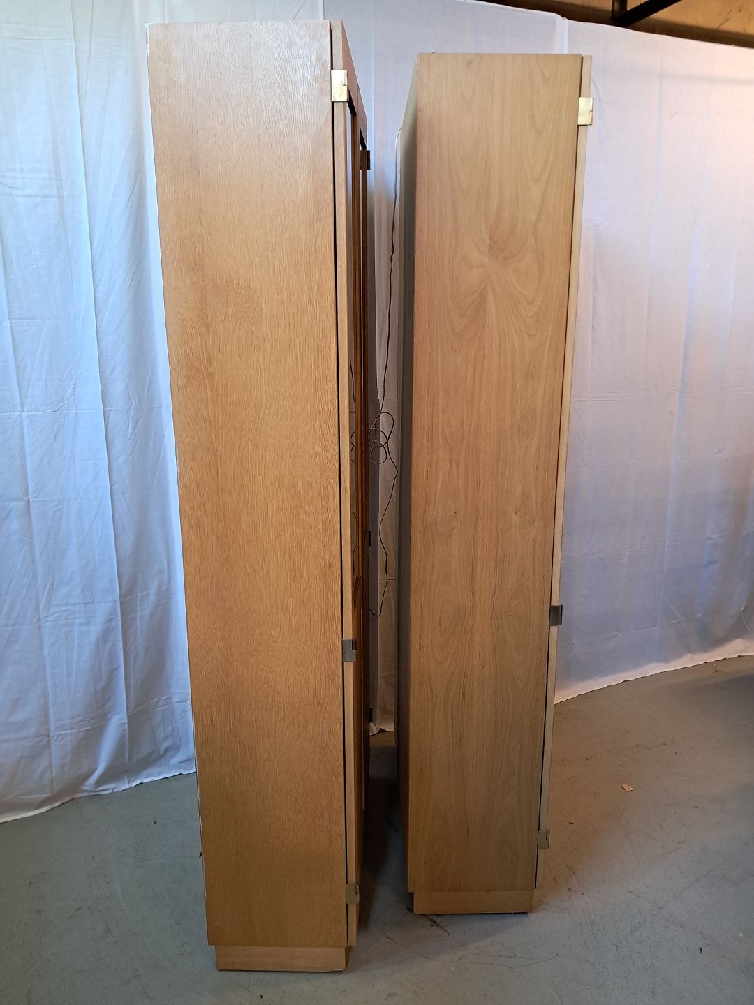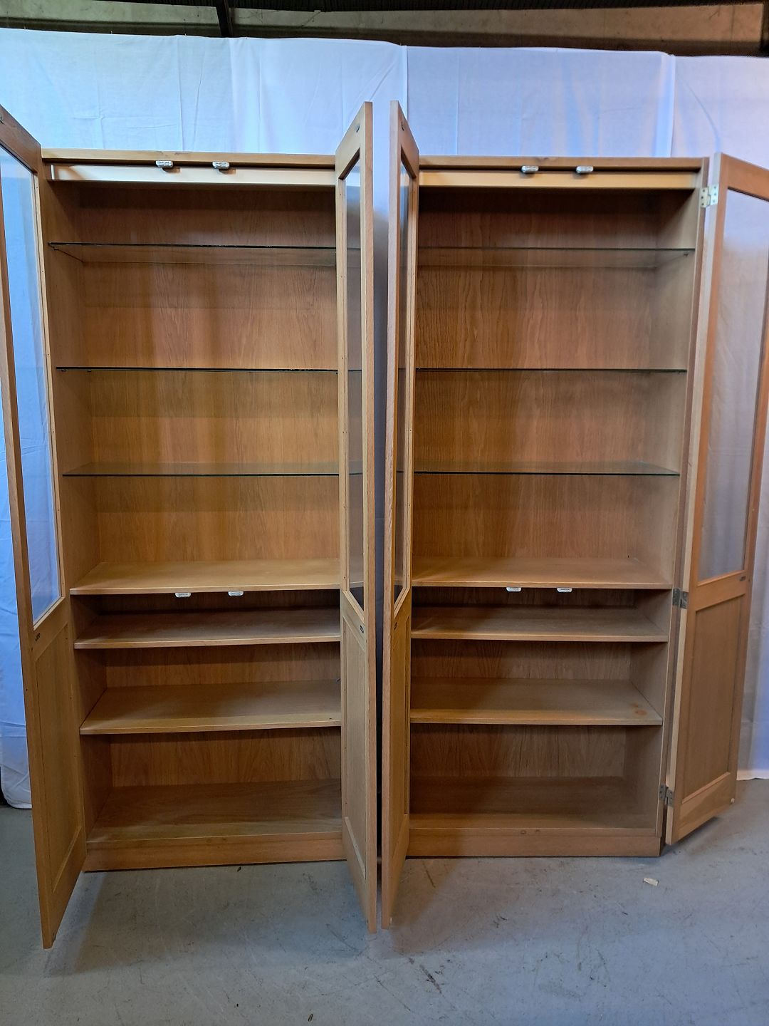 2 Vitrineskabe i fineret egetræ, fra 1970erne.
