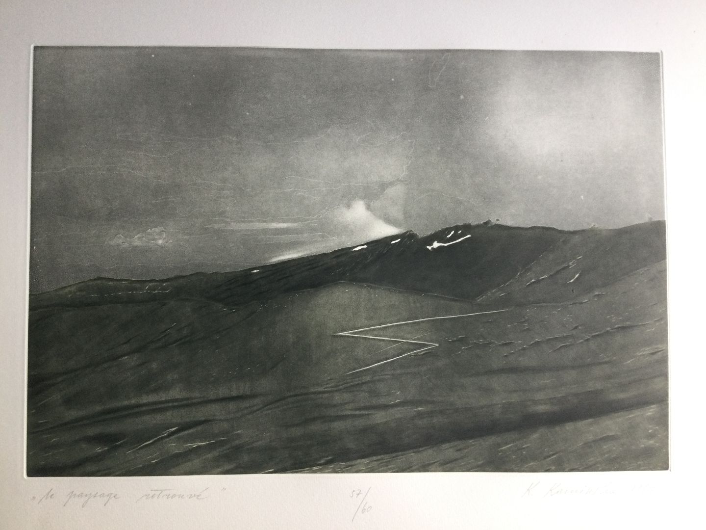 Litografi af Katarzyna Kaminska 1984 - landskab.