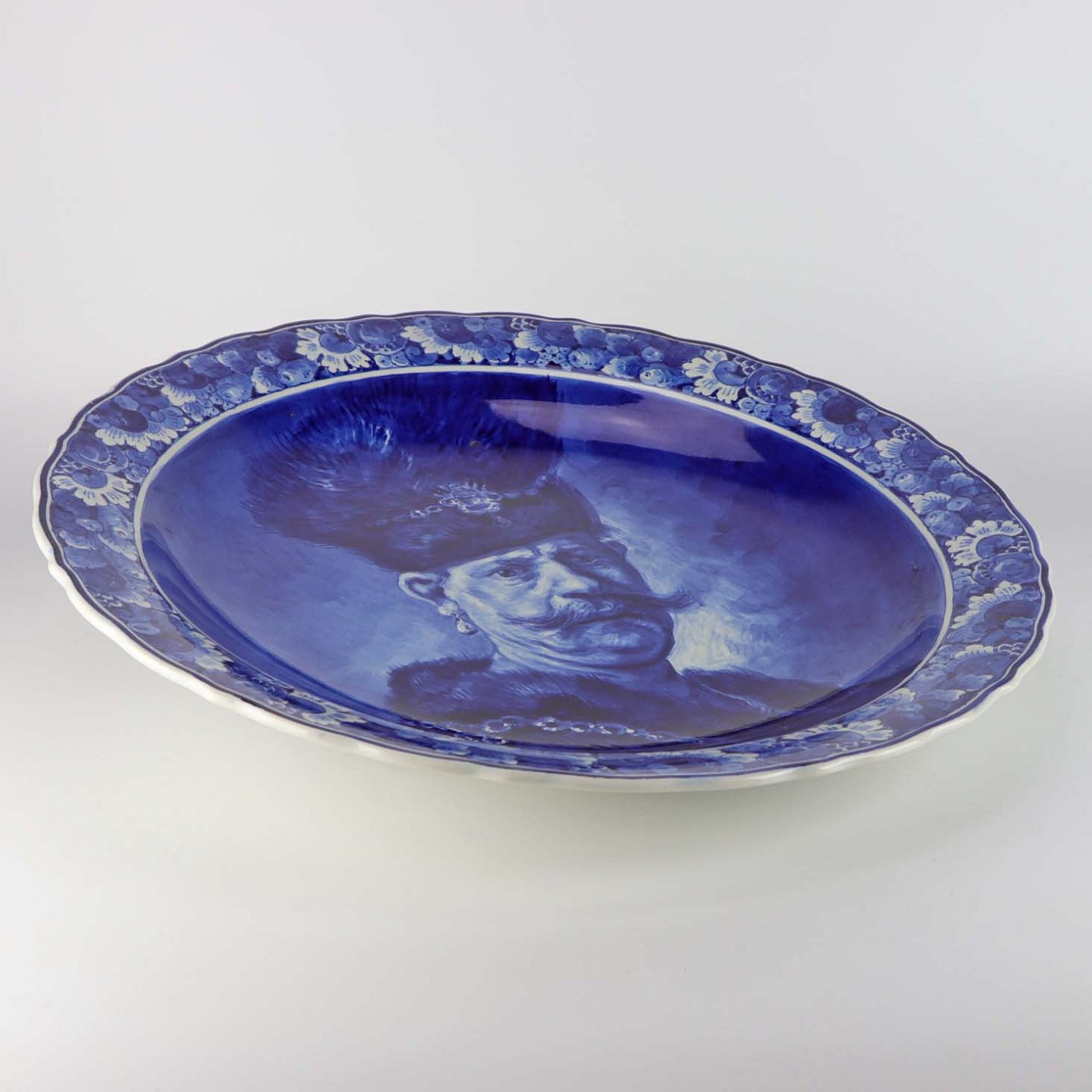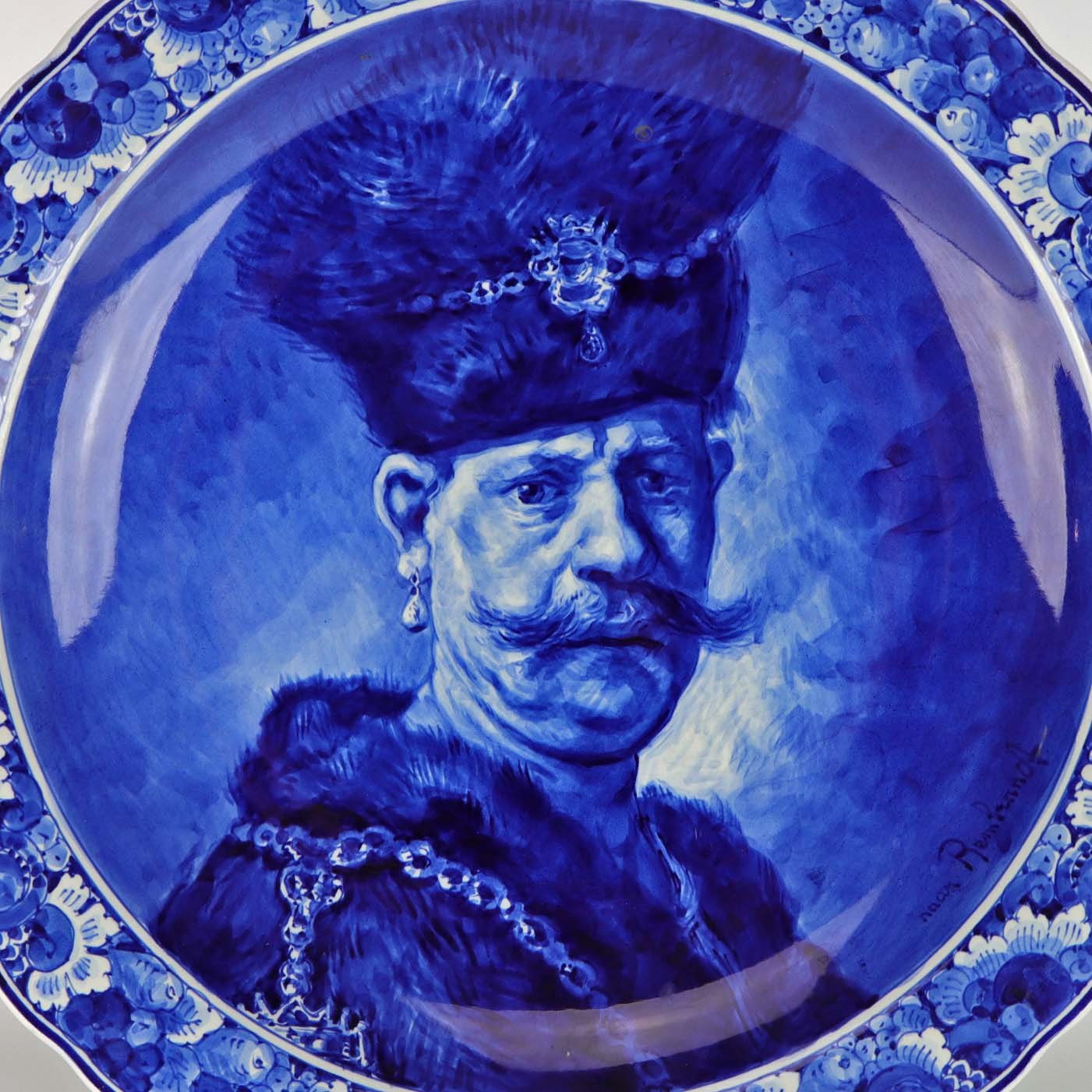 Stor ældre platte i hollandsk fajance med Rembrandts motiv af Polsk adelsmand. Nr. 608
