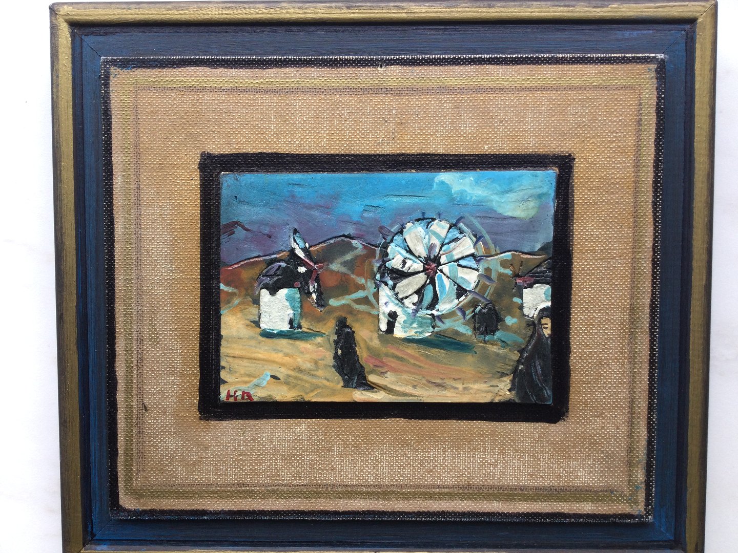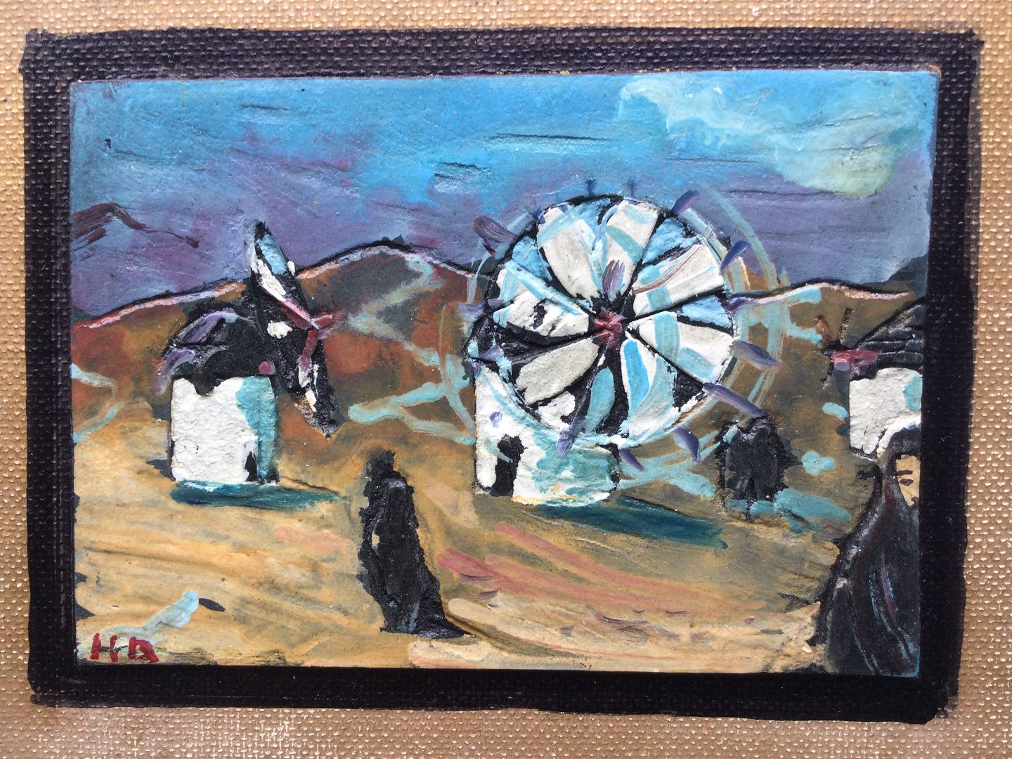 Bagpå maleriet - "Møllen og sorte koner på Mykonos" Grækenland 1966 samt "Et af mine første Grækenlandsbilleder 1966 - Henrik Bloch"