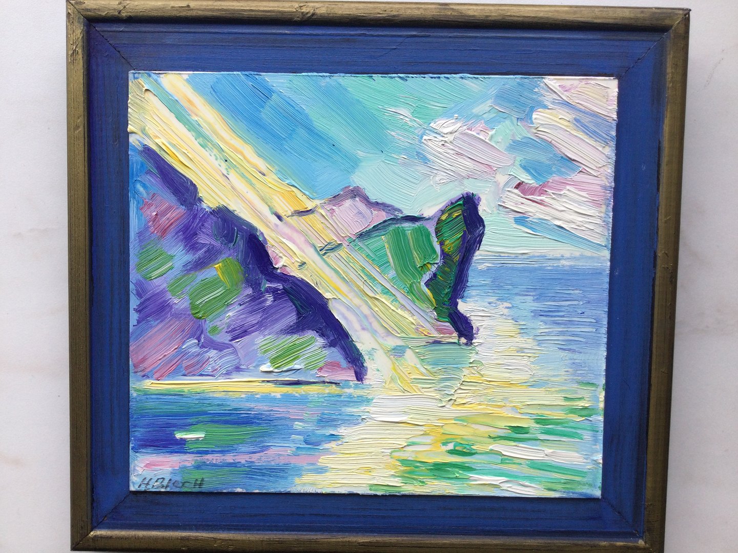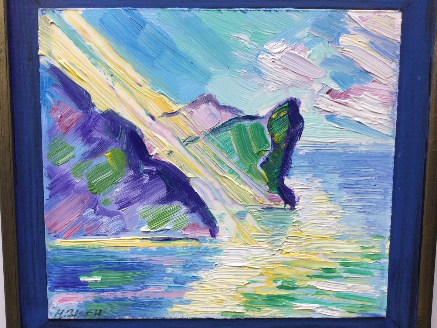 Maleri af Henrik Bloch - Solstrejf mellem fjeldene, Færøerne 2009