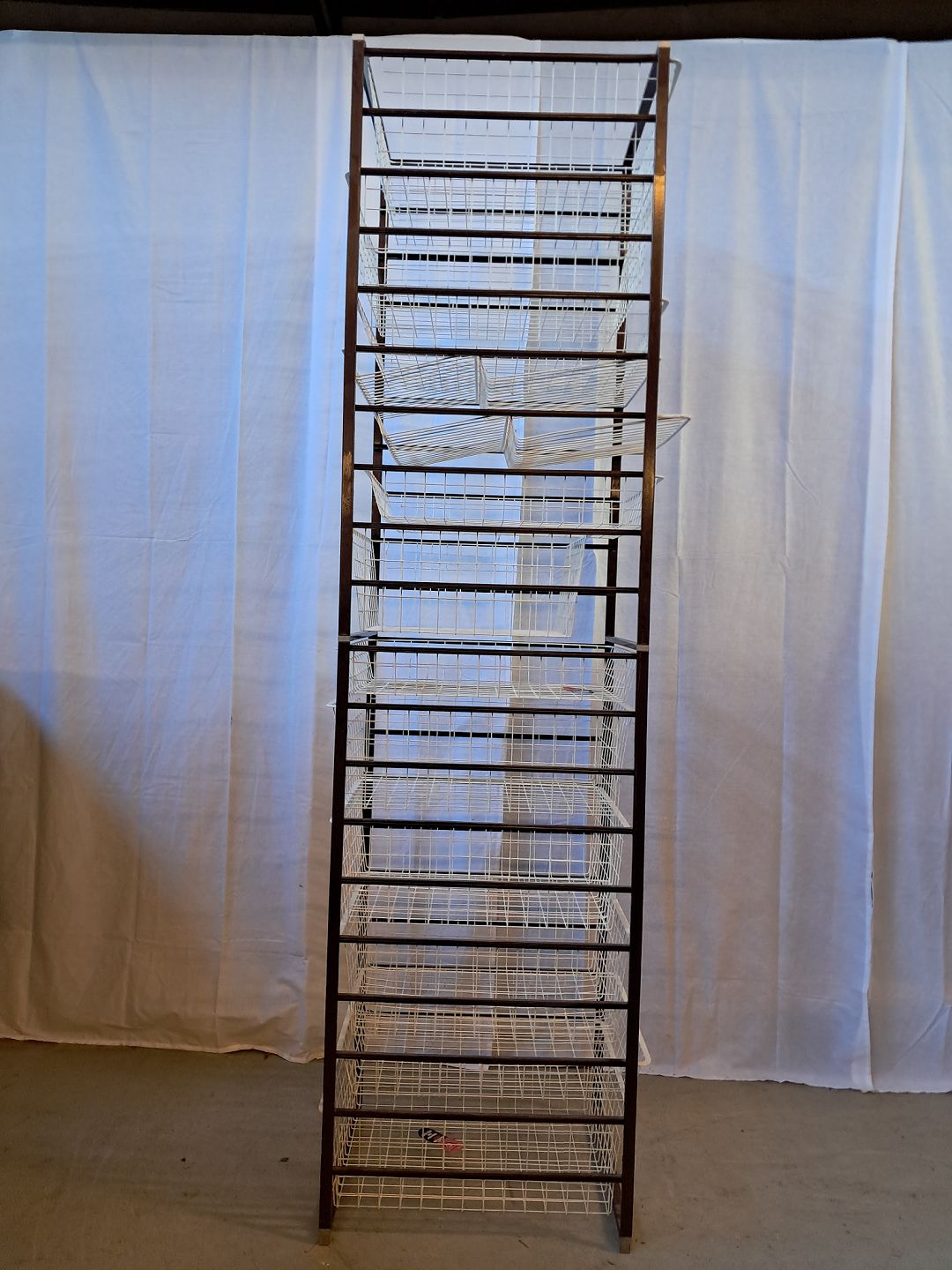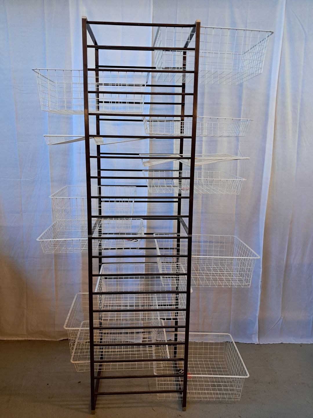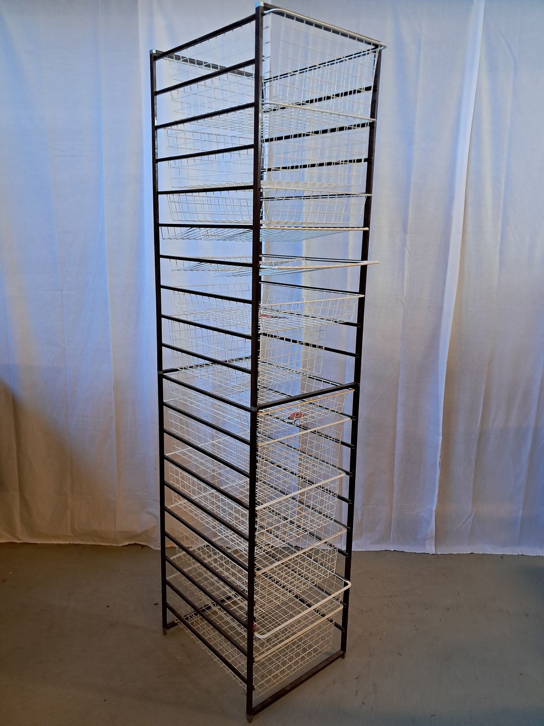 Elfa opbevaringsmøbel i metal med 13 metalkurve, fra 1980erne.