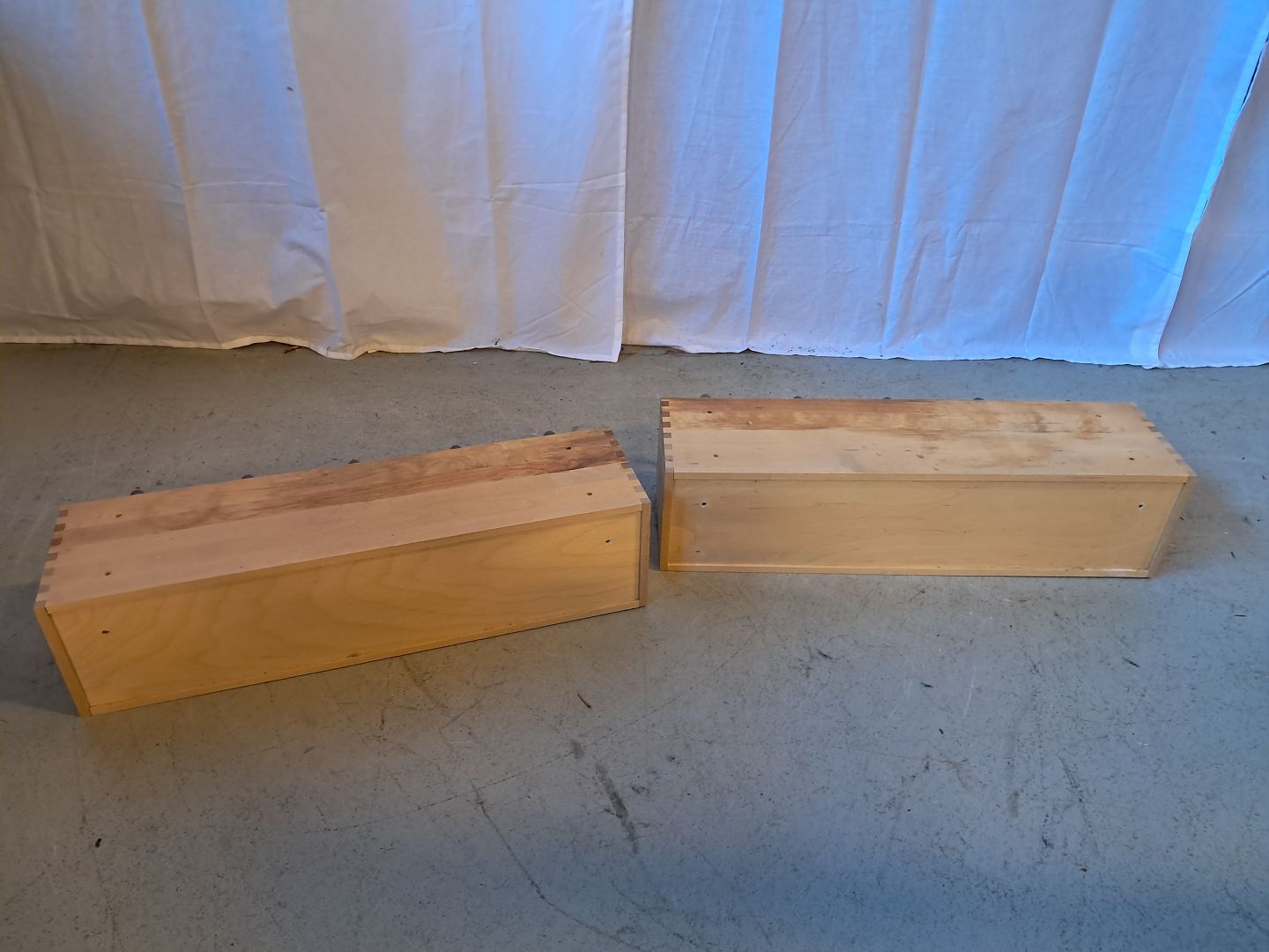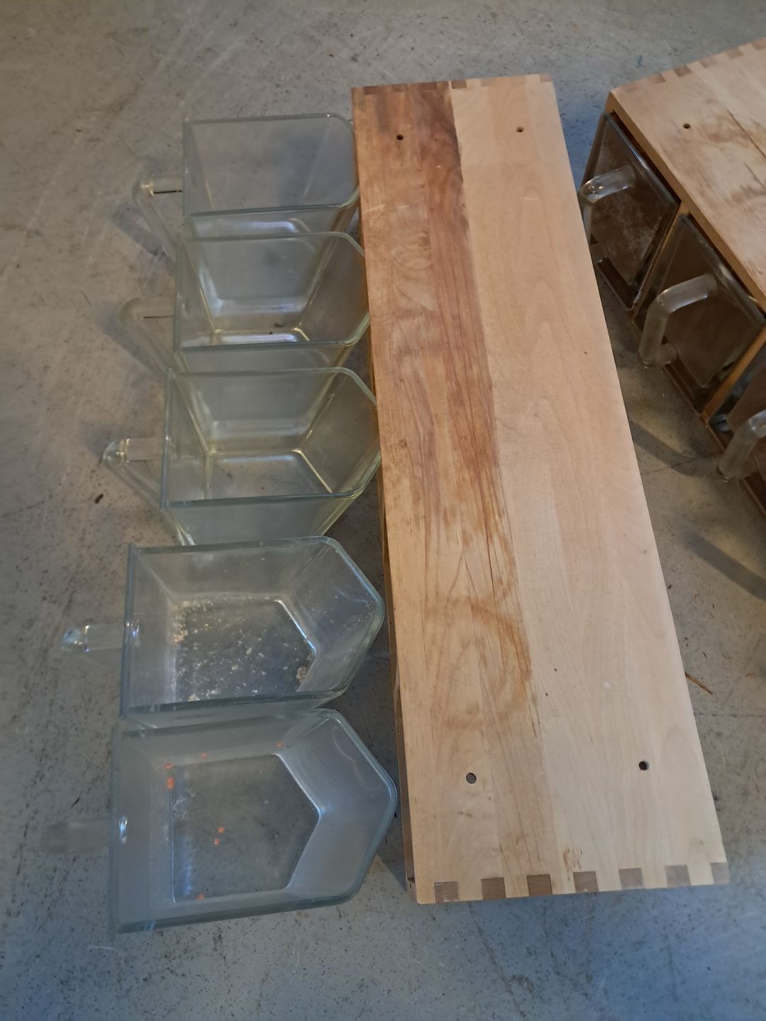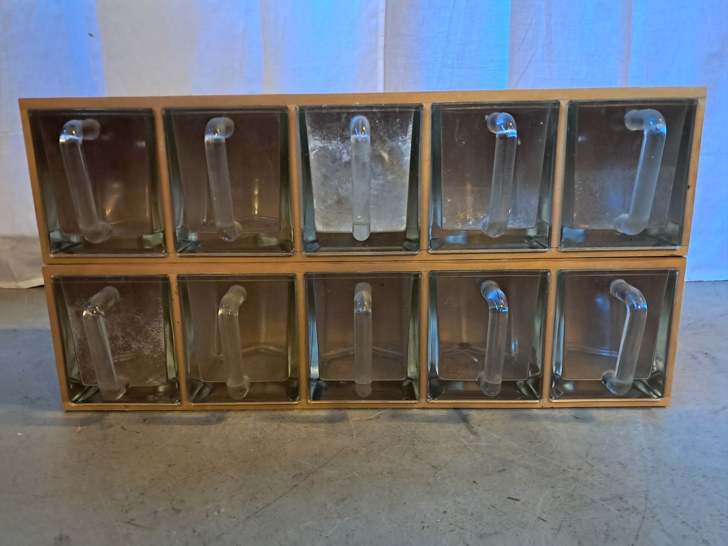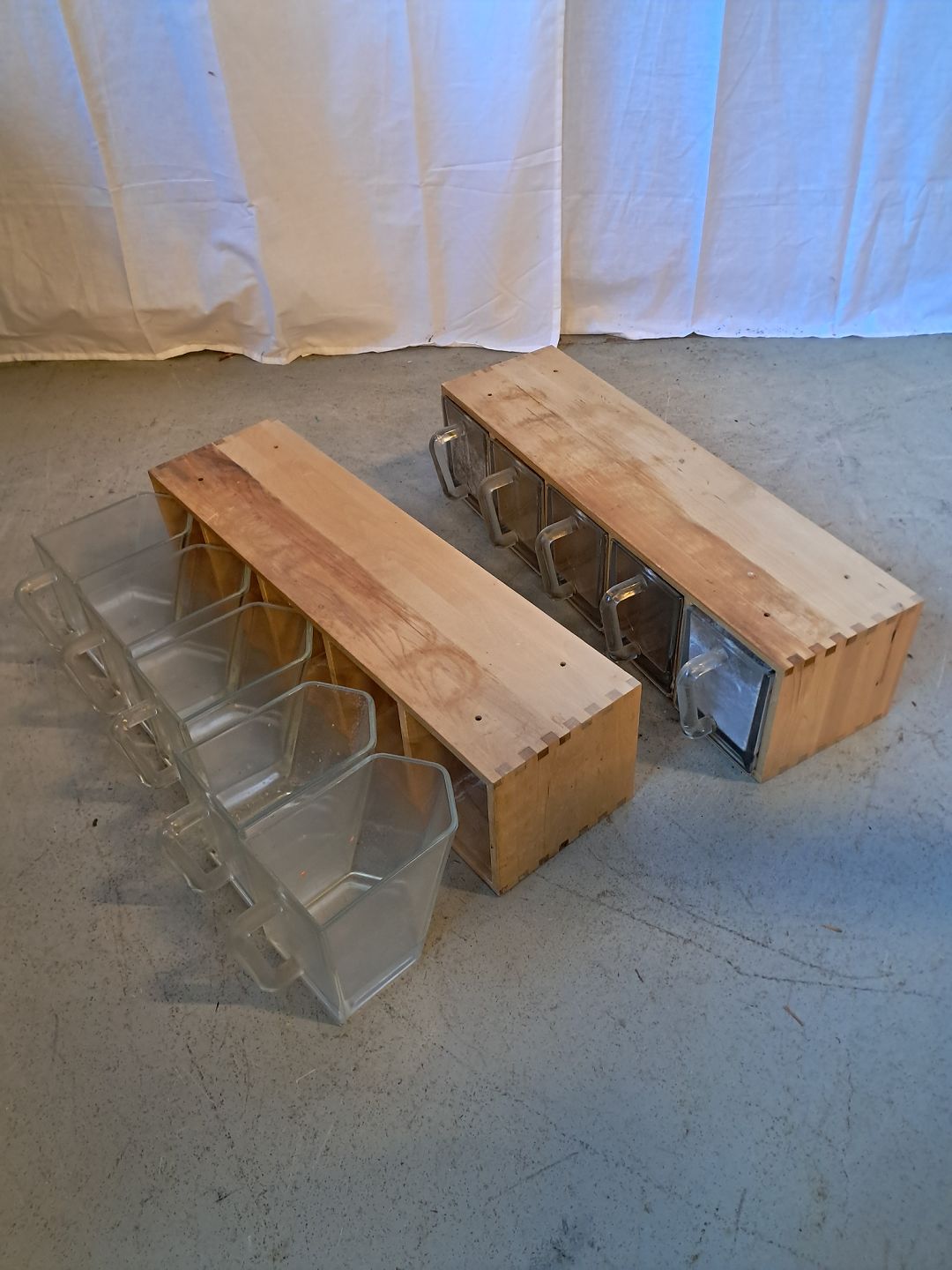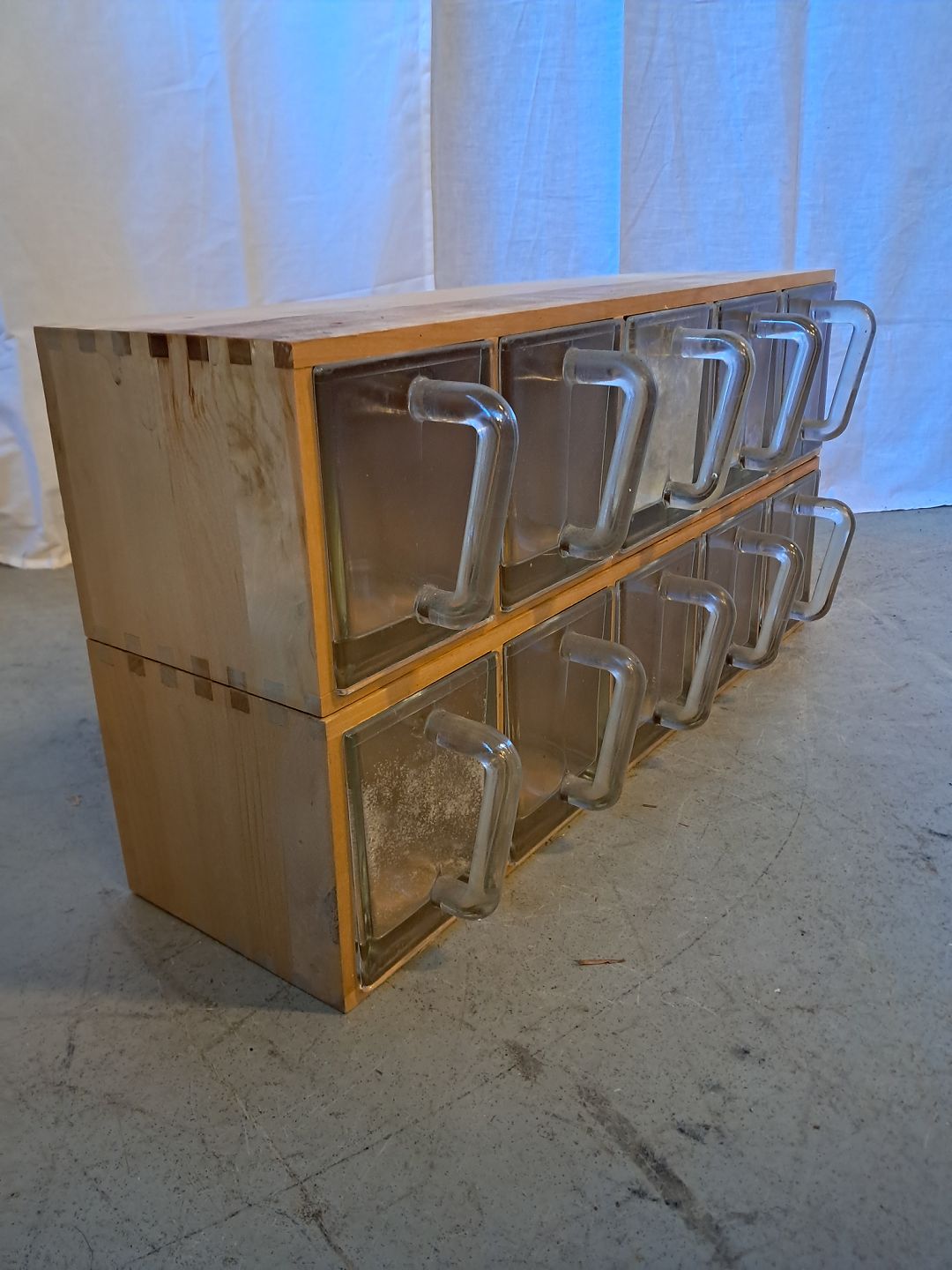 2 skuffemøbler i massivt bøgetræ med ialt 10 glasskuffer, fra 2010erne.
