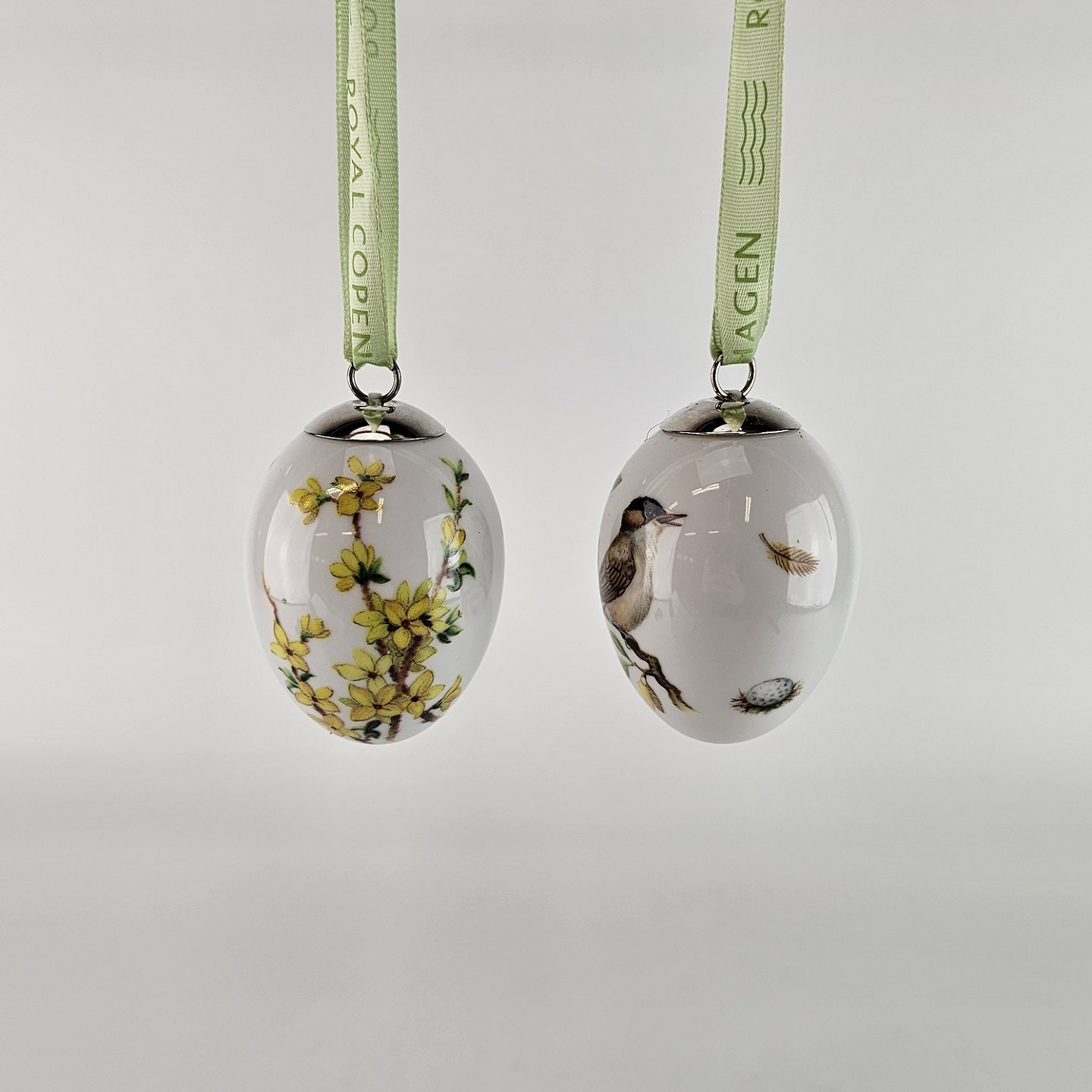 Påskeæg af kongelig porcelæn fra Forårskollektionen år 2011, med motiv af forsynthia og munk.