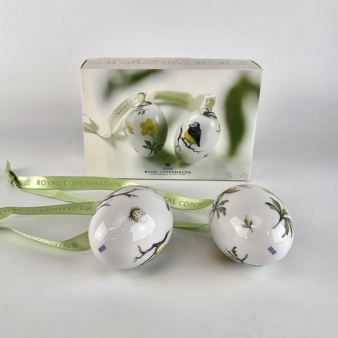 Påskeæg af kongelig porcelæn fra Forårskollektionen år 2008, med motiv af gul anemone og blåmejse.