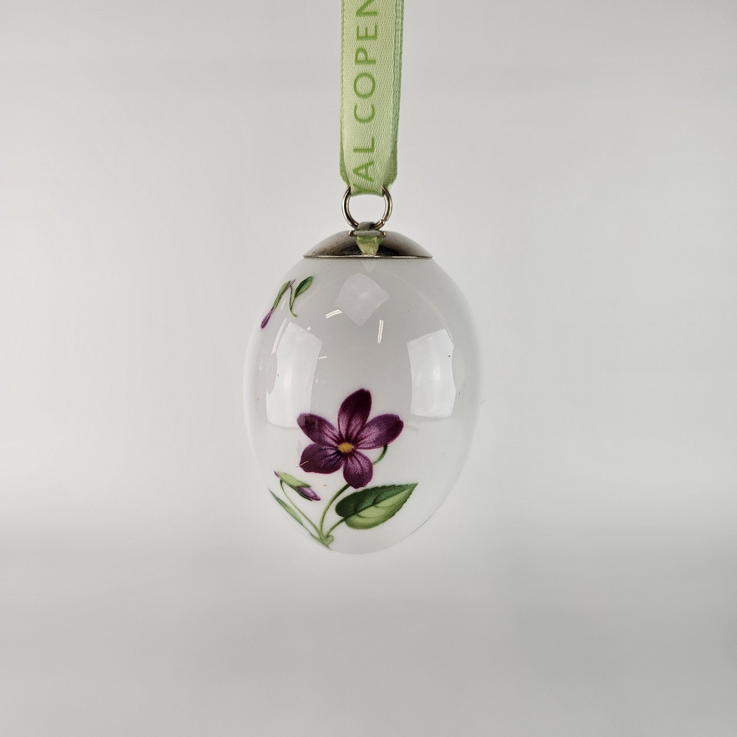Påskeæg af kongelig porcelæn fra Forårskollektionen år 2007, med motiv af blå anemone, stedmoderblomst, viol og krokus.