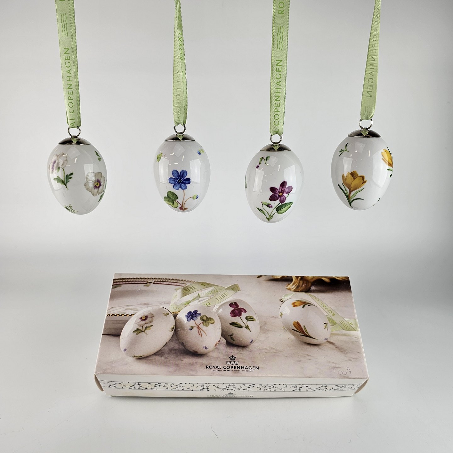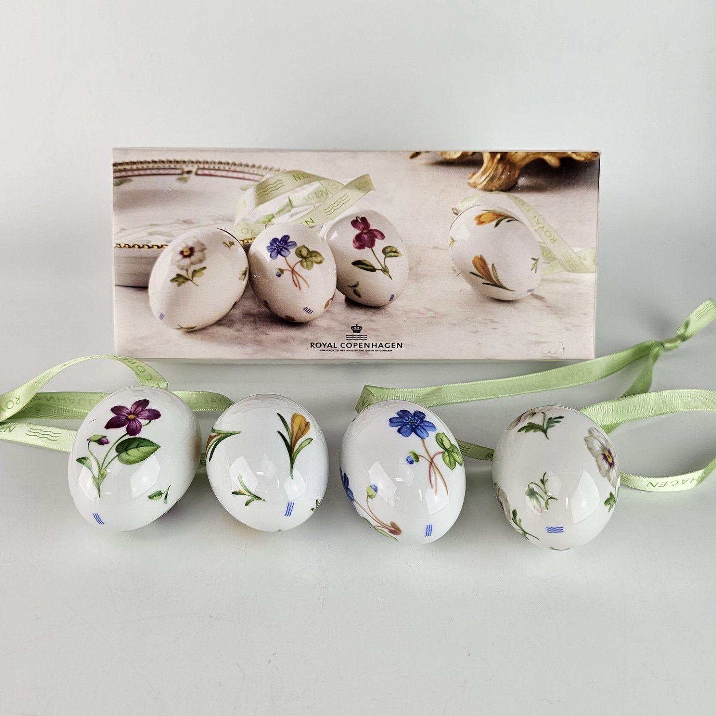 Æggene leveres med mintgrønt bånd og i original æske
