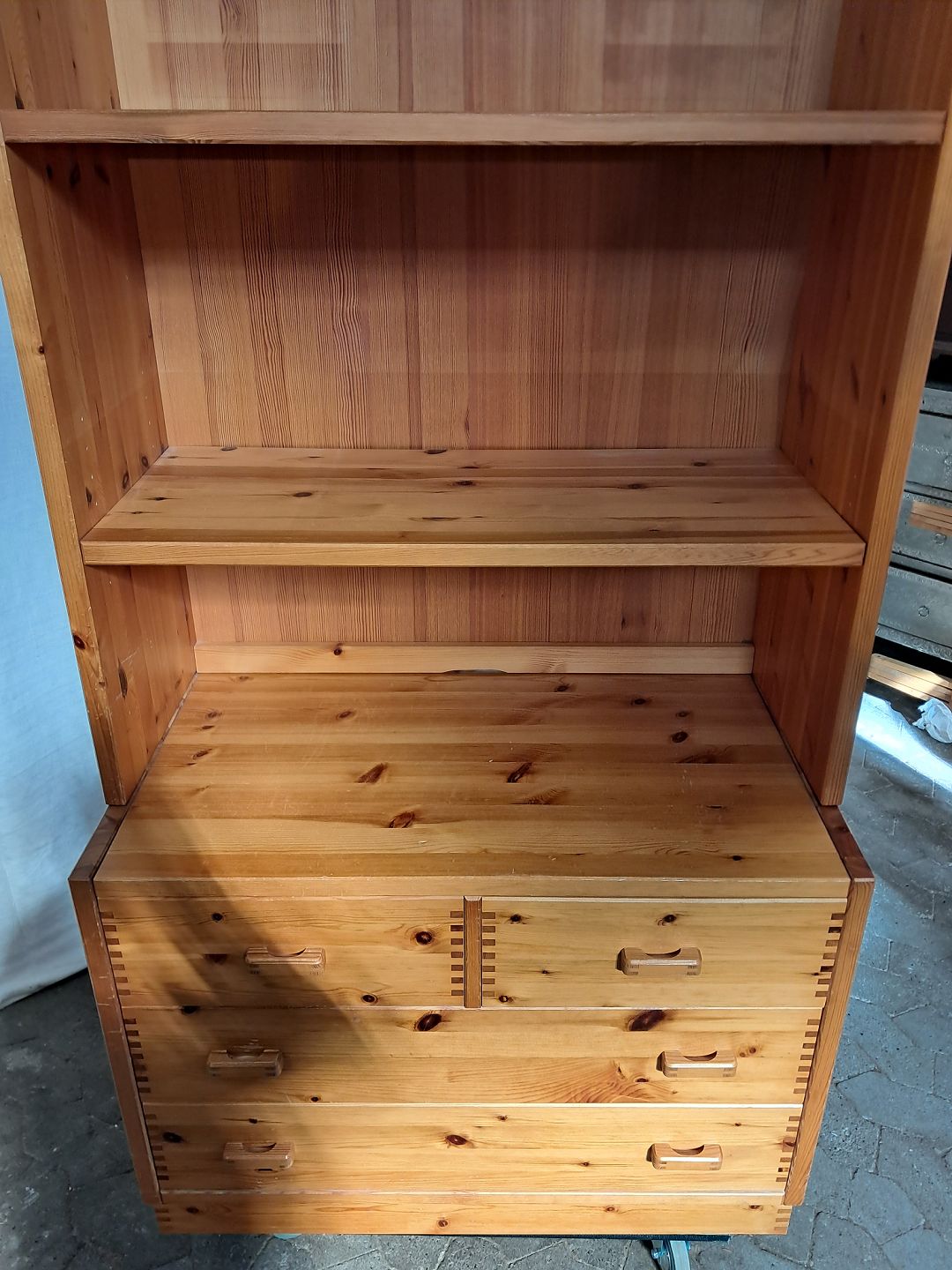 Reol i massivt fyrretræ, fra 1980erne.
