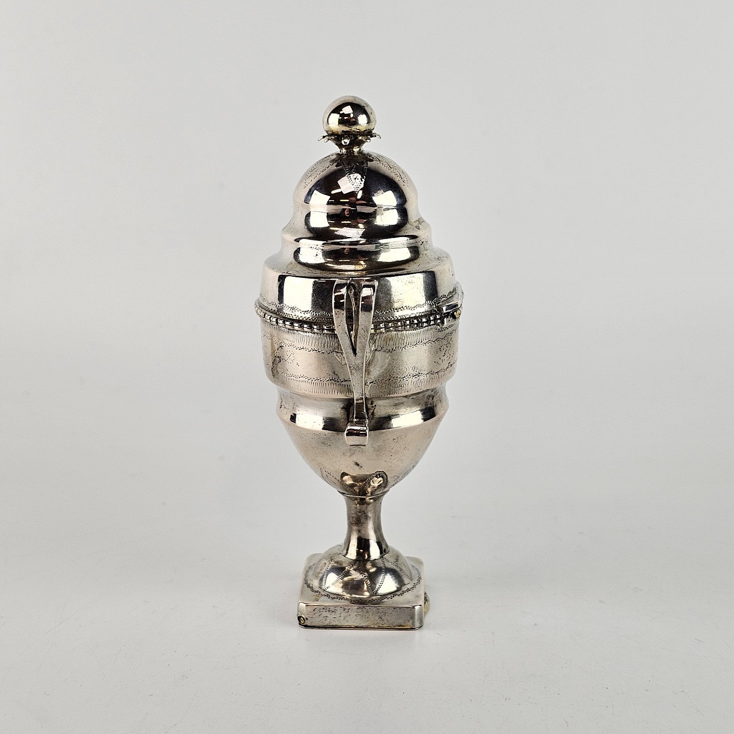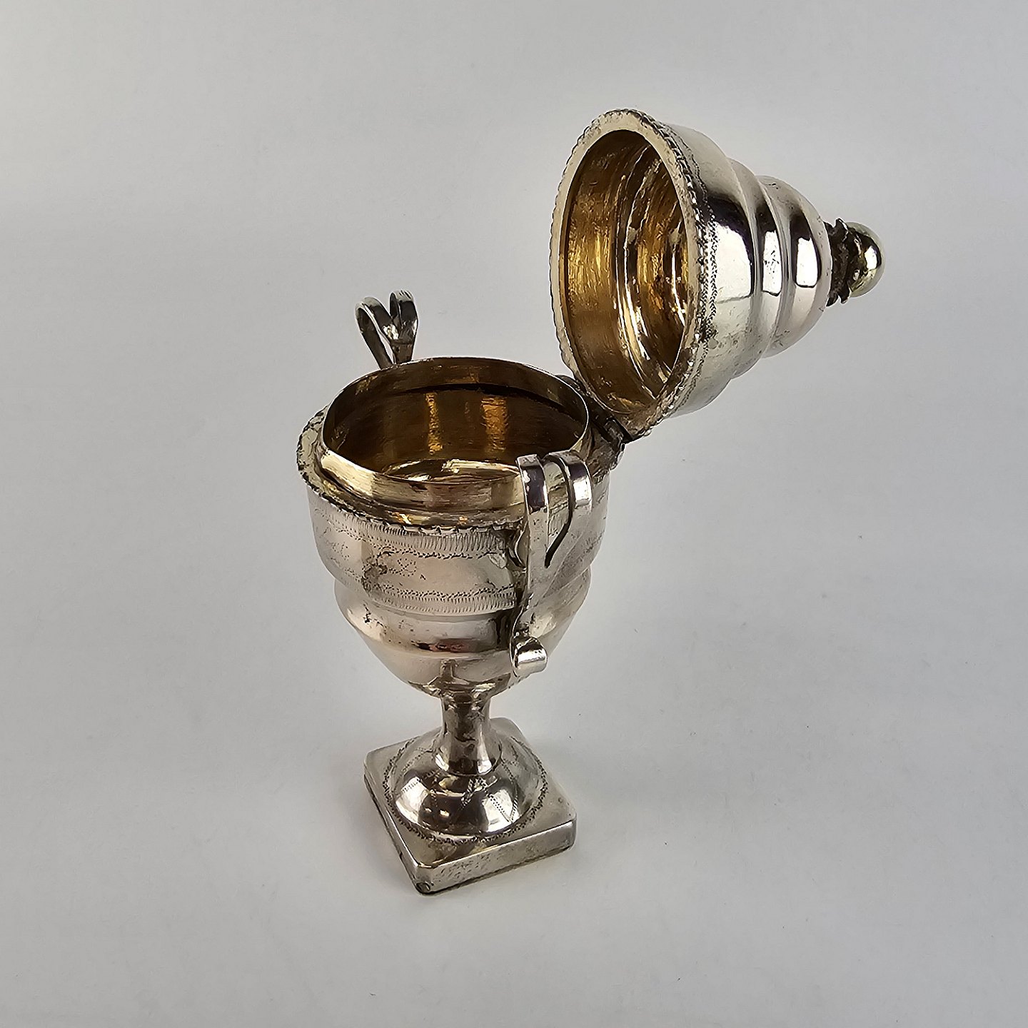 Hovedvandsæg i sølv, med rum til svamp under bunden