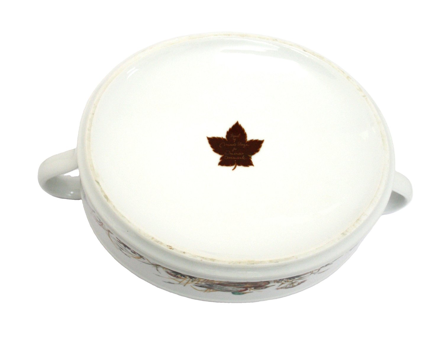 Jagtstellet designet af Mads Stage for Imerco. Ragoutfad med låg, Terrin med Gråand motiv. 2,2 ltr. Højde 18,5 cm. Bredde 19 cm. Længde 29 cm. Pris: 1100 kr. stk. Lager: 1