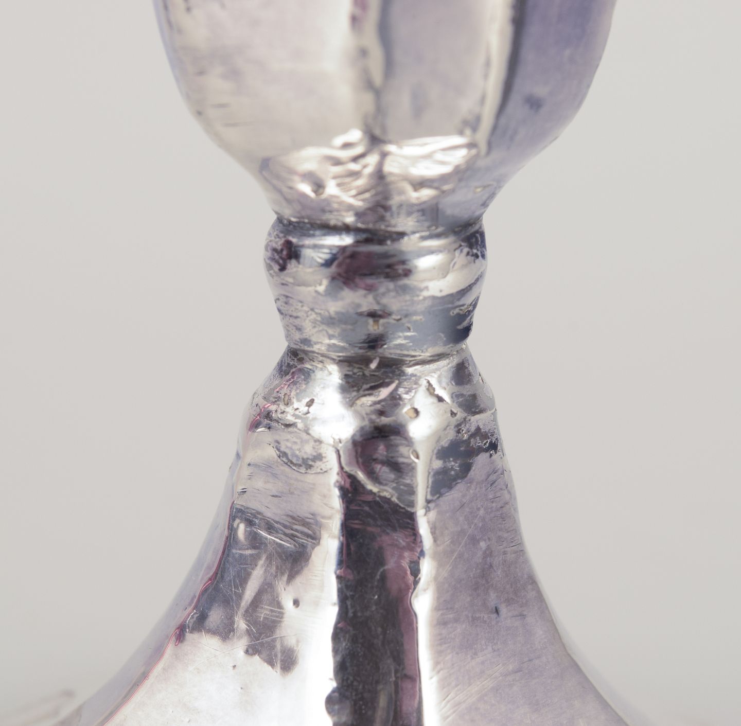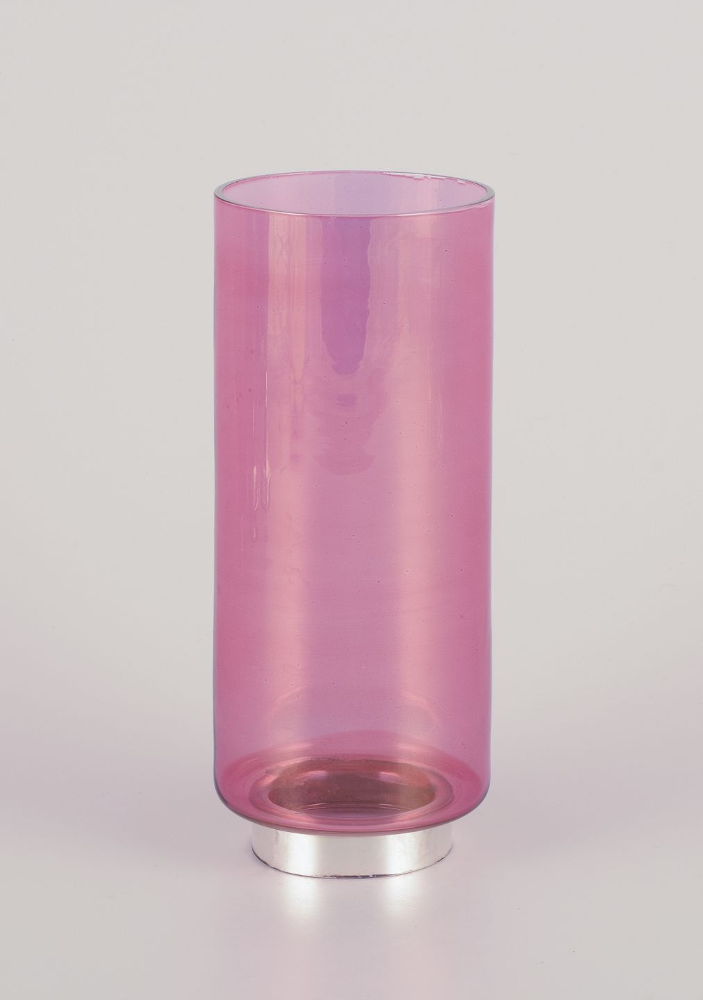 Pair of "Hurricanes" candlesticks in silver and violet glass.
