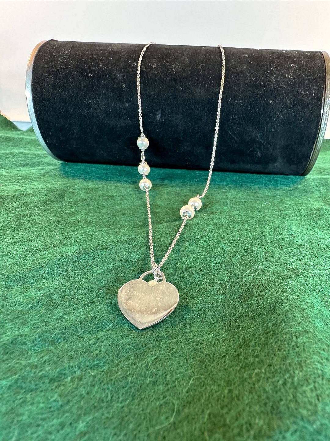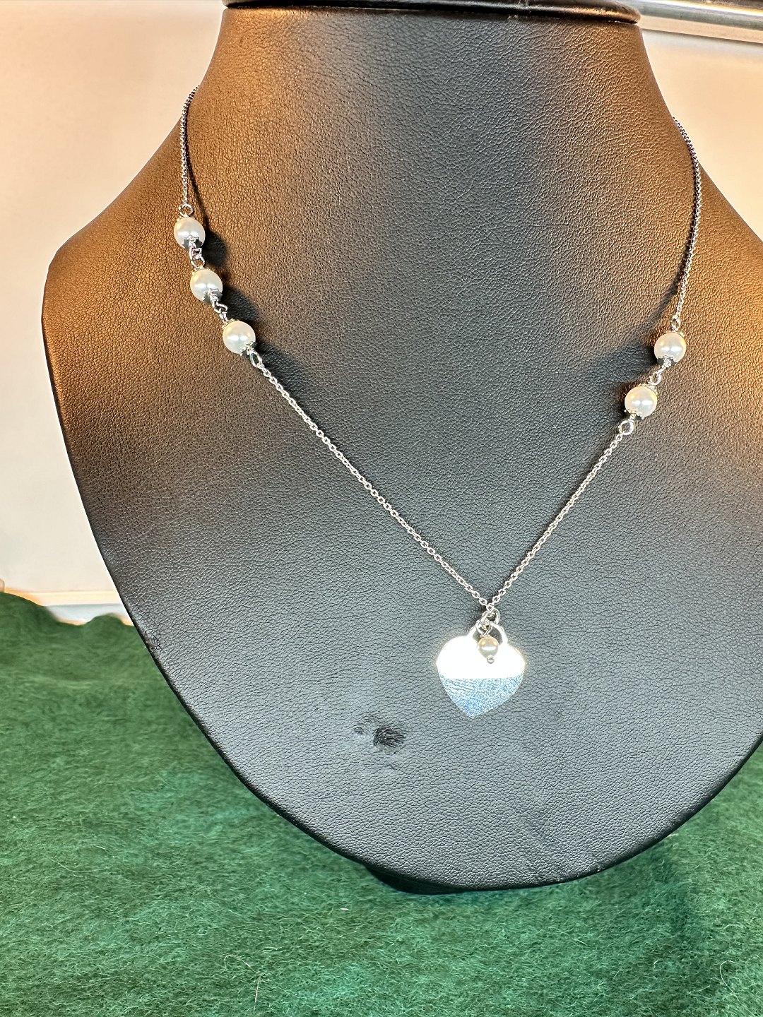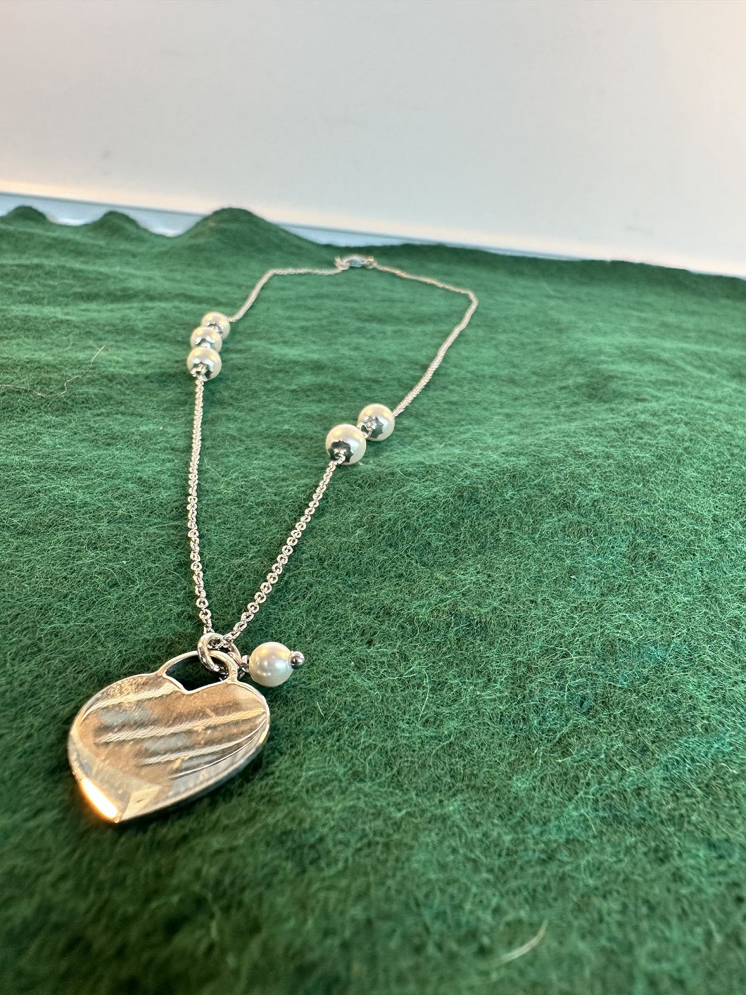 Beautiful heart necklace in Sterling silver 925s Length 44 cm with pearl ball on the side