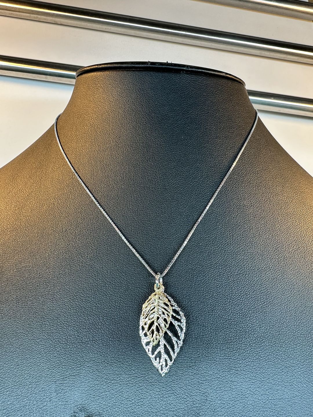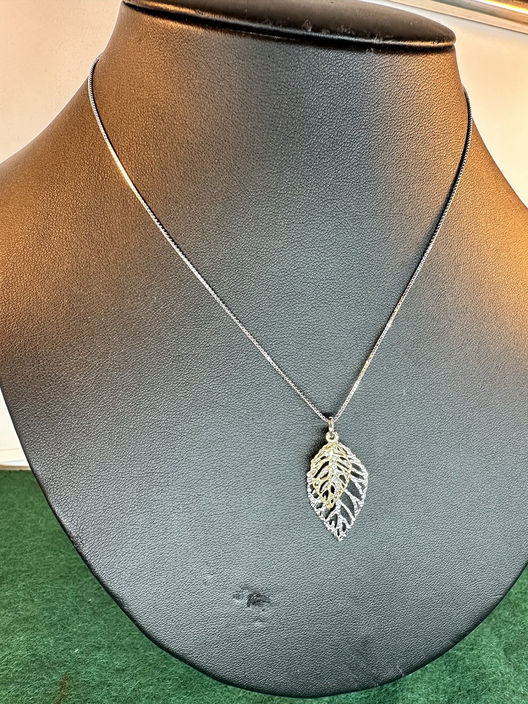 Sterling silver necklace with pendant, silver 925s gold-plated pendant, length 40 cm, pendant is leaf-shaped.