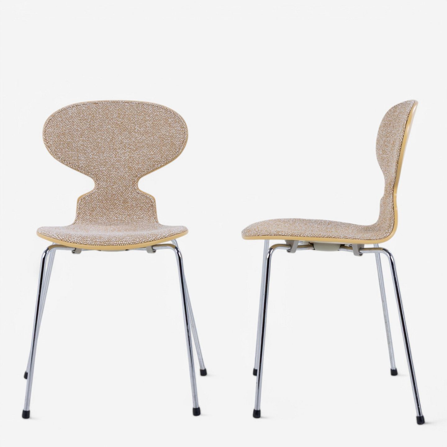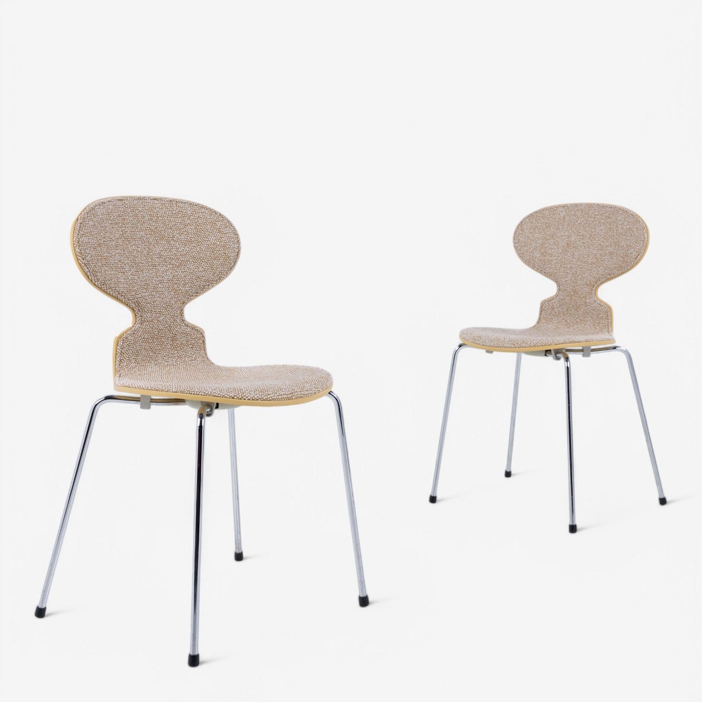 AJ 3100 - 'Myrestol' lakeret i 'RAL 1002' og forsidepolstret i 'Moss 021'-stof.