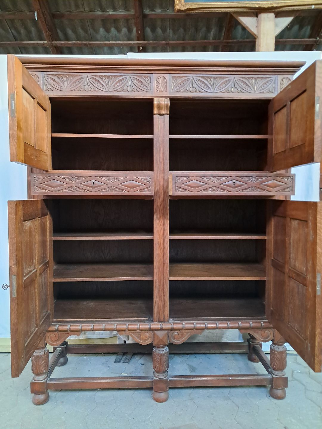Dækketøjsskab i fineret og massivt egetræ, fra 1930erne.