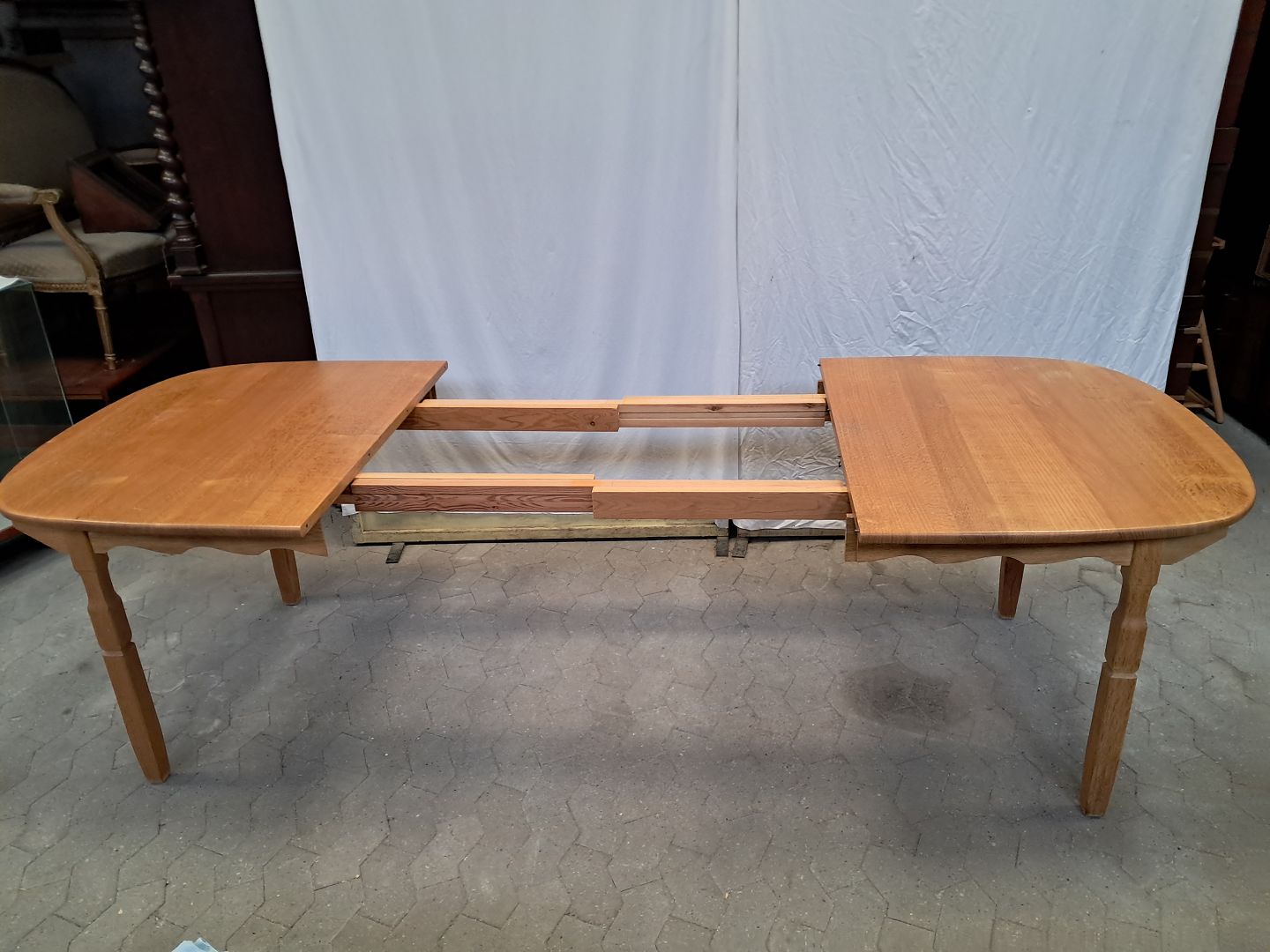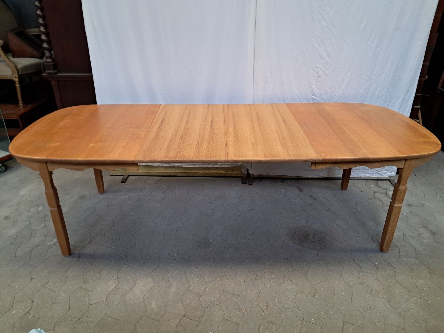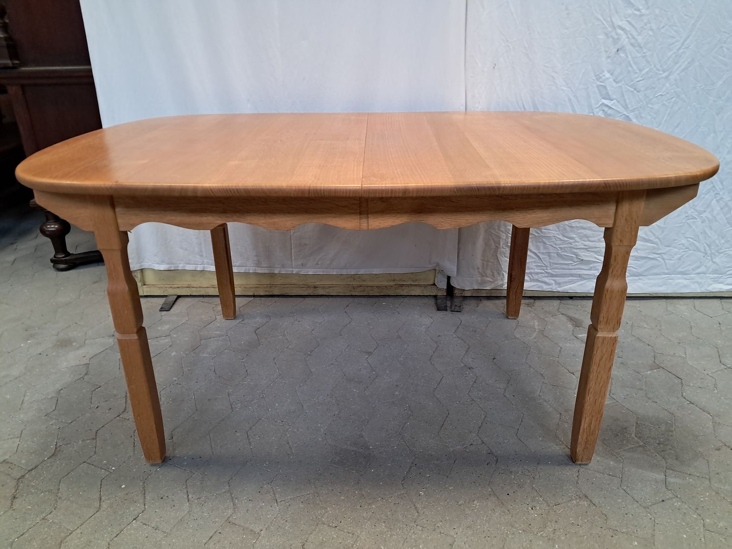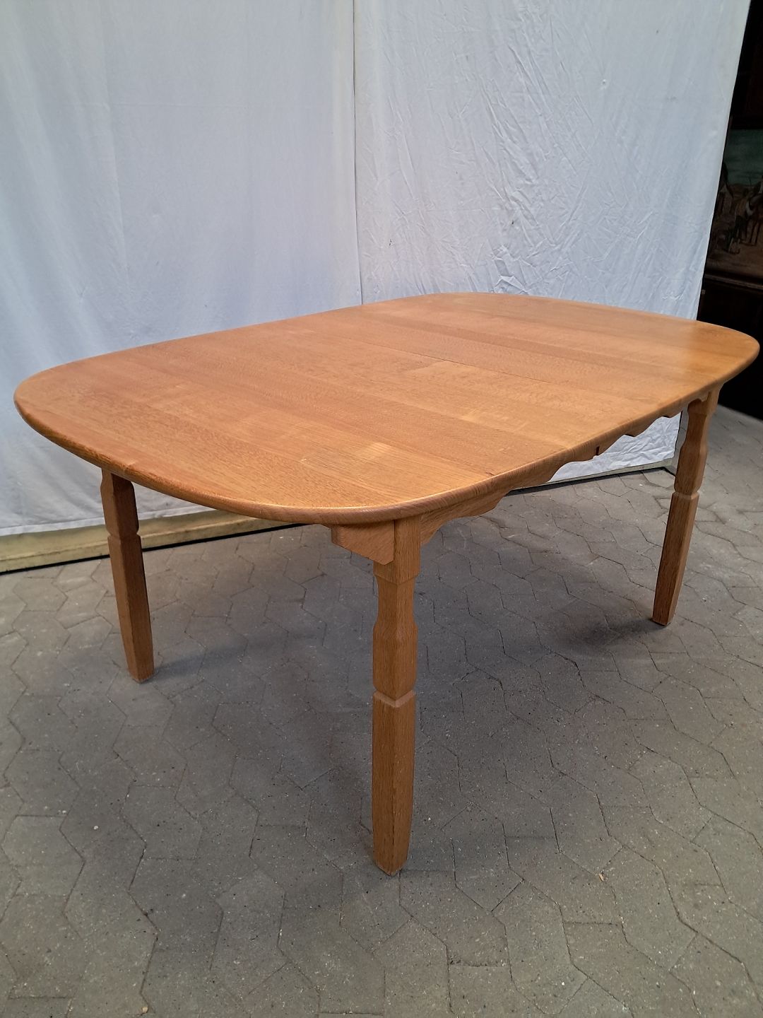 Bord i massivt egetræ med 2 tillægsplader, fra 1980erne.