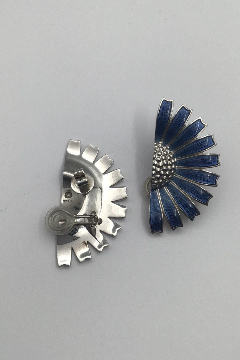 Georg Jensen Sterling Sølv Daisy Øreringe (Blå) Måler 4.5 cm x 2.2 cm (1.77 inch x 0.86 inch) Samlet Vægt 20.51 gr (0.72 oz)