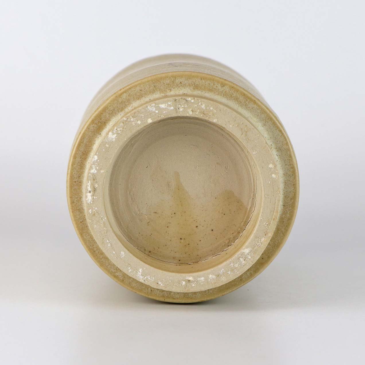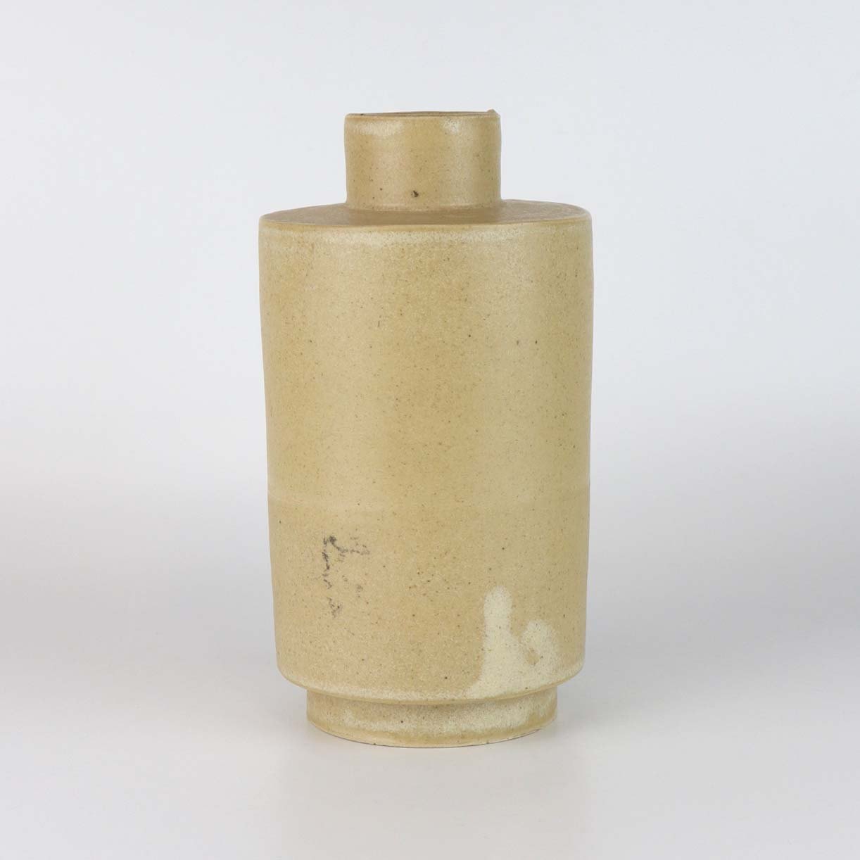 Vase i stentøj med lysebrun glasur.