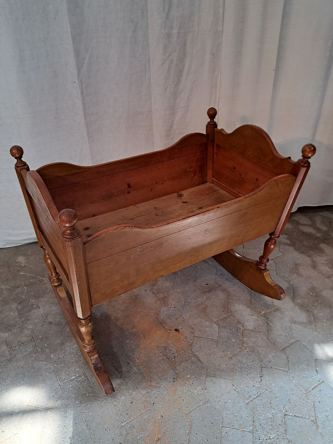 Barneseng / Vugge i massivt fyrretræ, fra 1910erne.