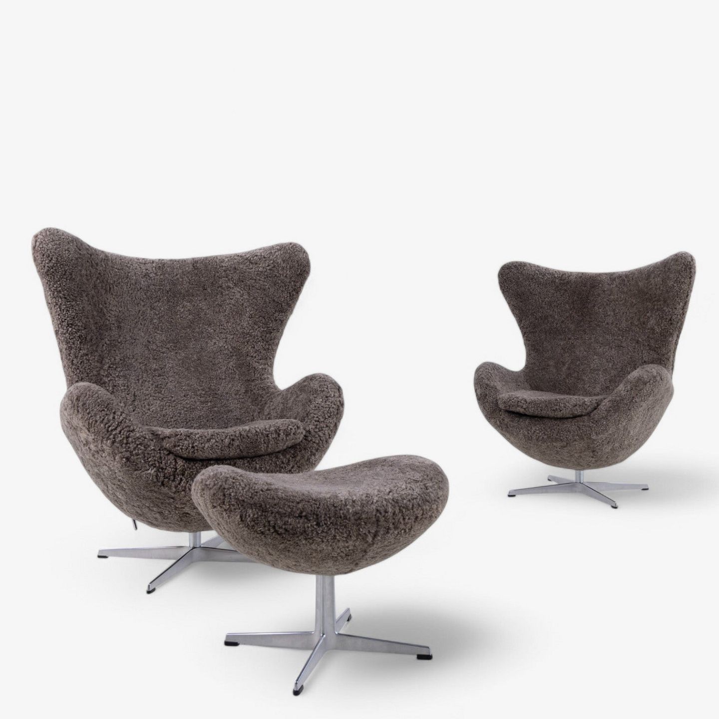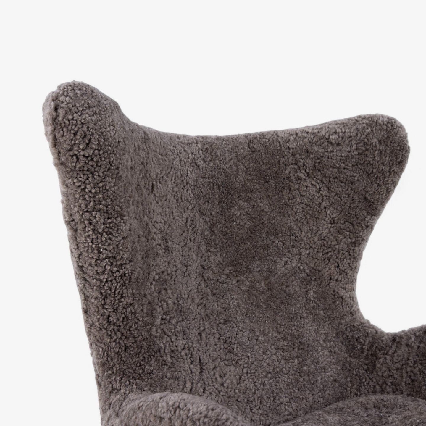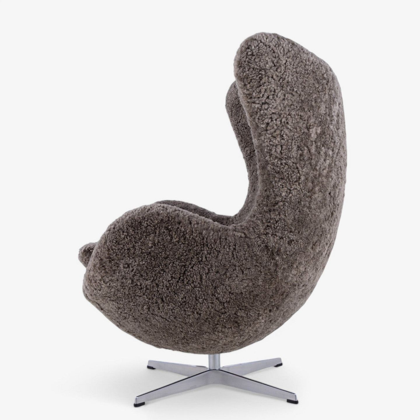 AJ 3316 - Nybetrukket 'Ægget'-lænestol i lammeskind (Sahara 07, Curly 17mm) med helstøbt aluminiumsfod.
