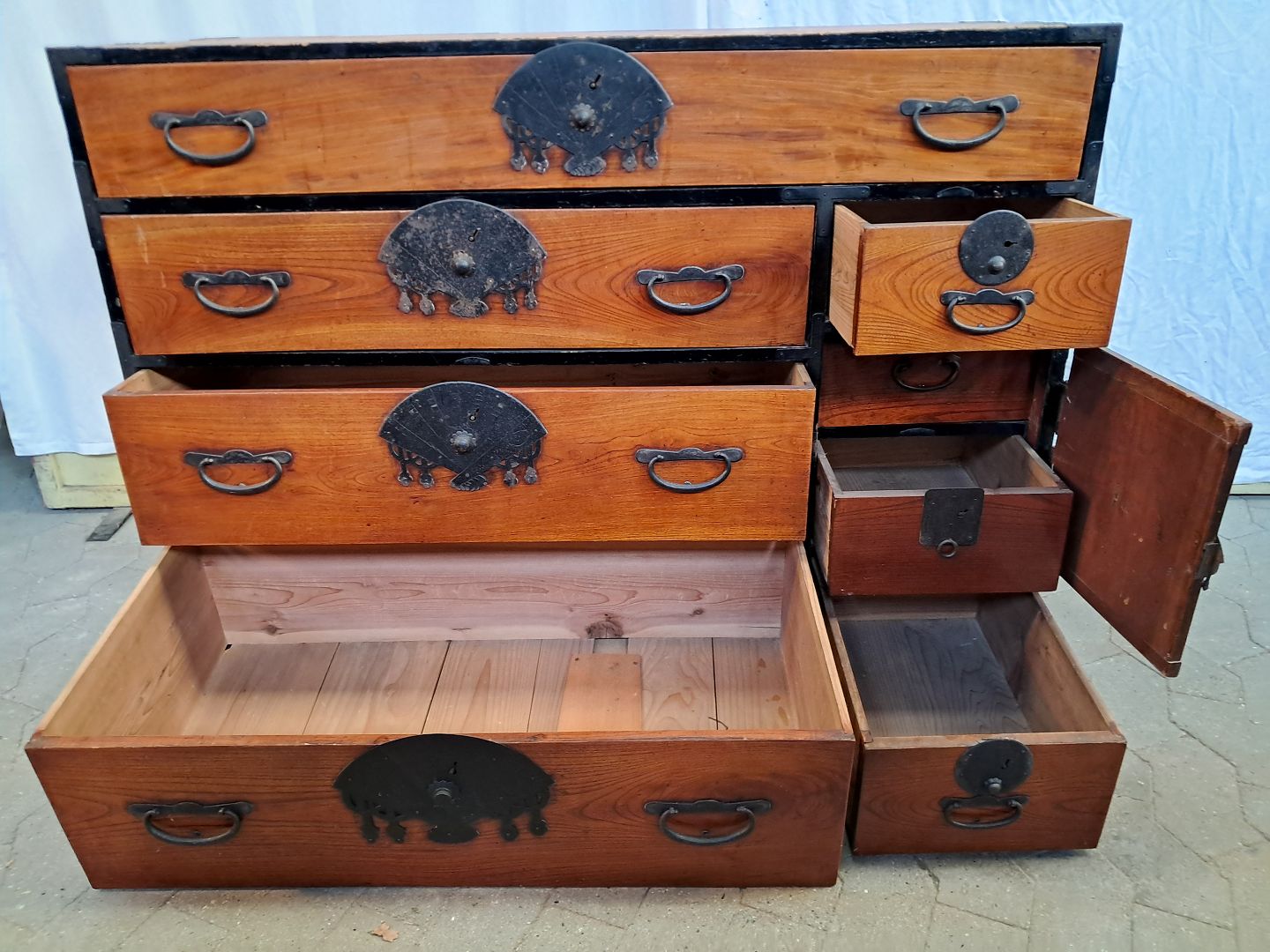 Malet kommode i massivt træ med fronter i elmetræ, fra 1930erne.