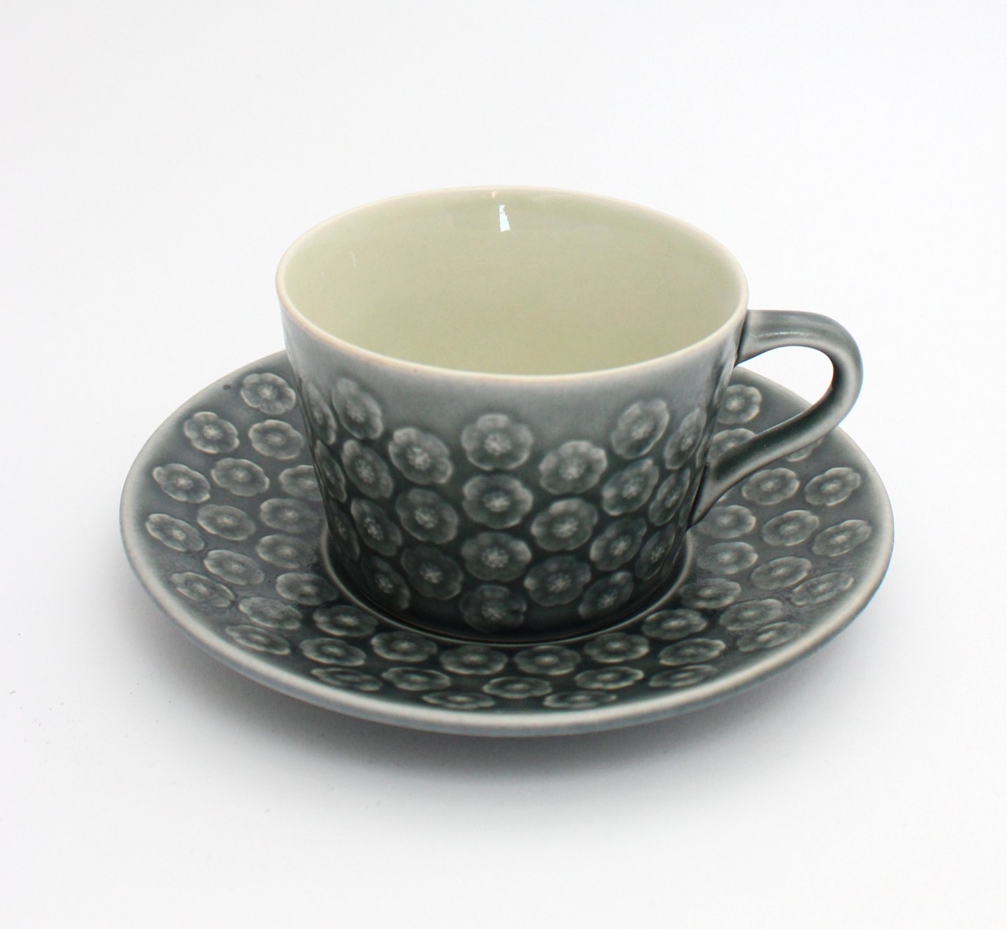 Tekop med underkop. Højde 6 cm. Diameter 8,5 cm. Underkop 15 cm. Flot stand, mint condition. Ingen krakeleringer. Pris: 475 kr. stk. Lager: 6