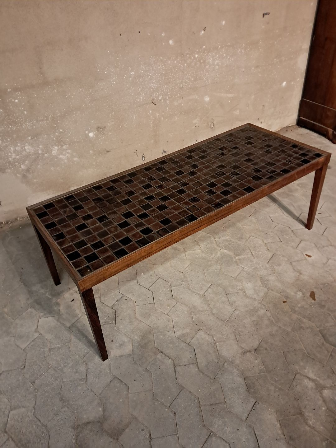 Sofabord i fineret palisander og kakler, fra 1960erne.