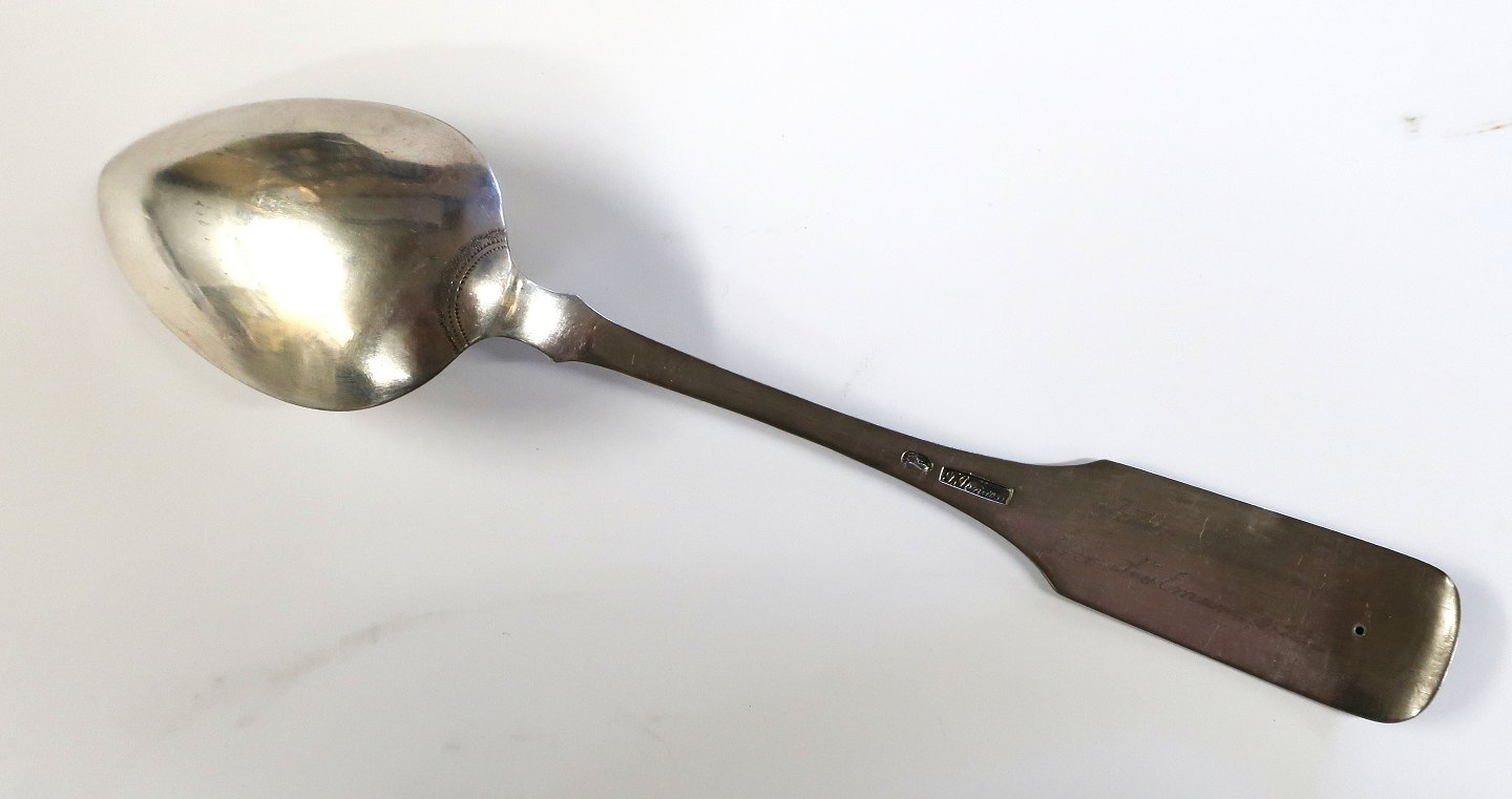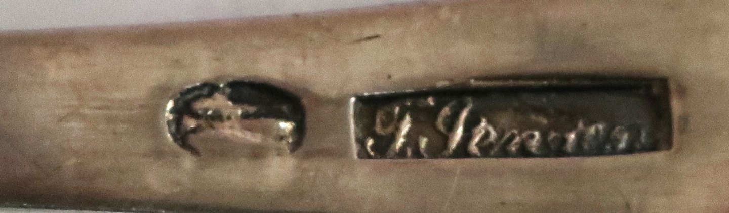 Thomas Jensen the Younger, Aabenraa. Beautiful silver spoon with gilded seashell. Length 23 cm.