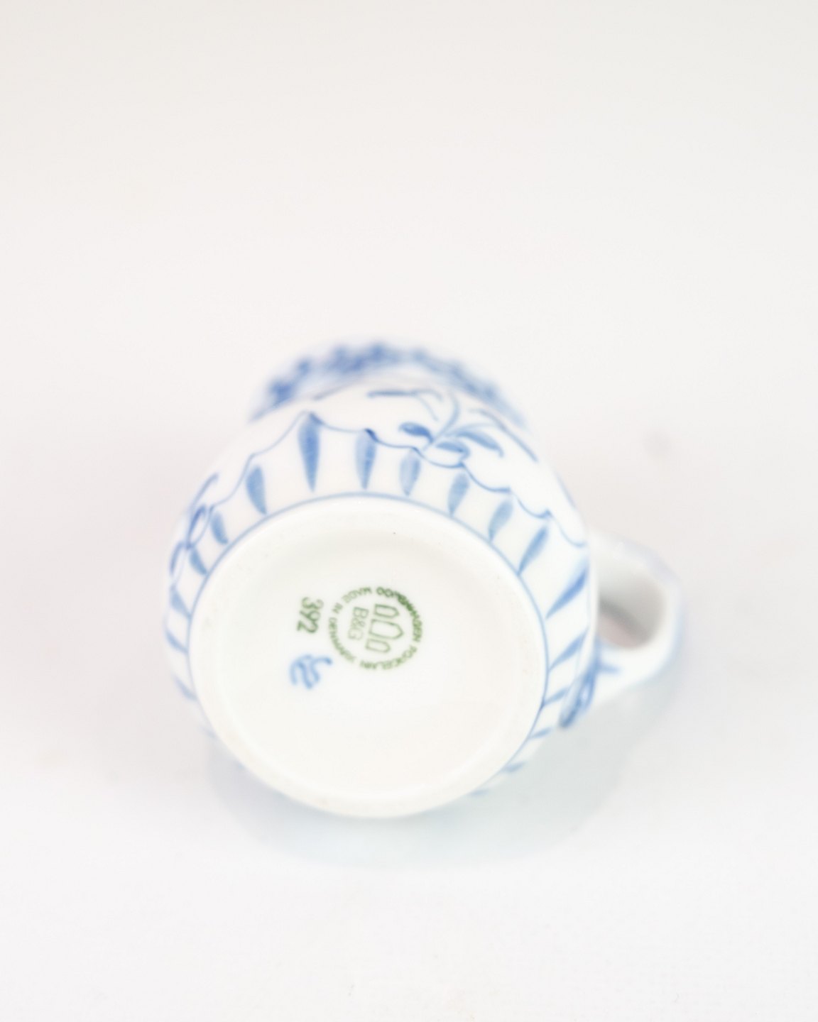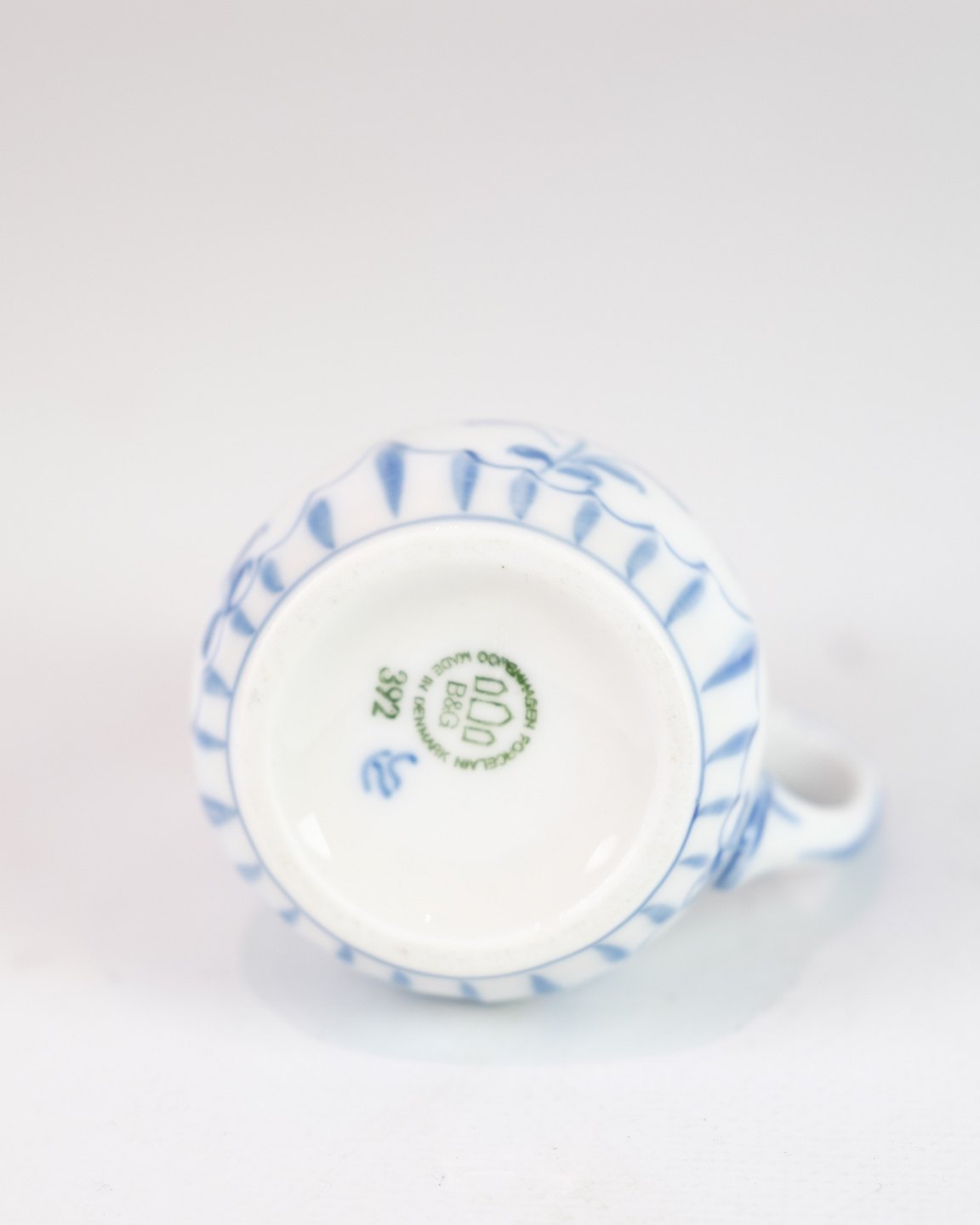 Flødekande stemplet med dekorationsnummer 392 fra Bing & Grøndahl. Fremstillet af porcelæn med håndmalet sommerfuglmotiv.