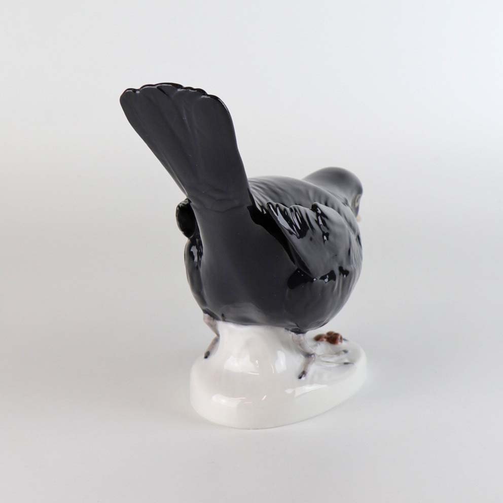 Figur i porcelæn med motiv af stående solsort med røde bær liggende ved fødderne. Nr. 2405