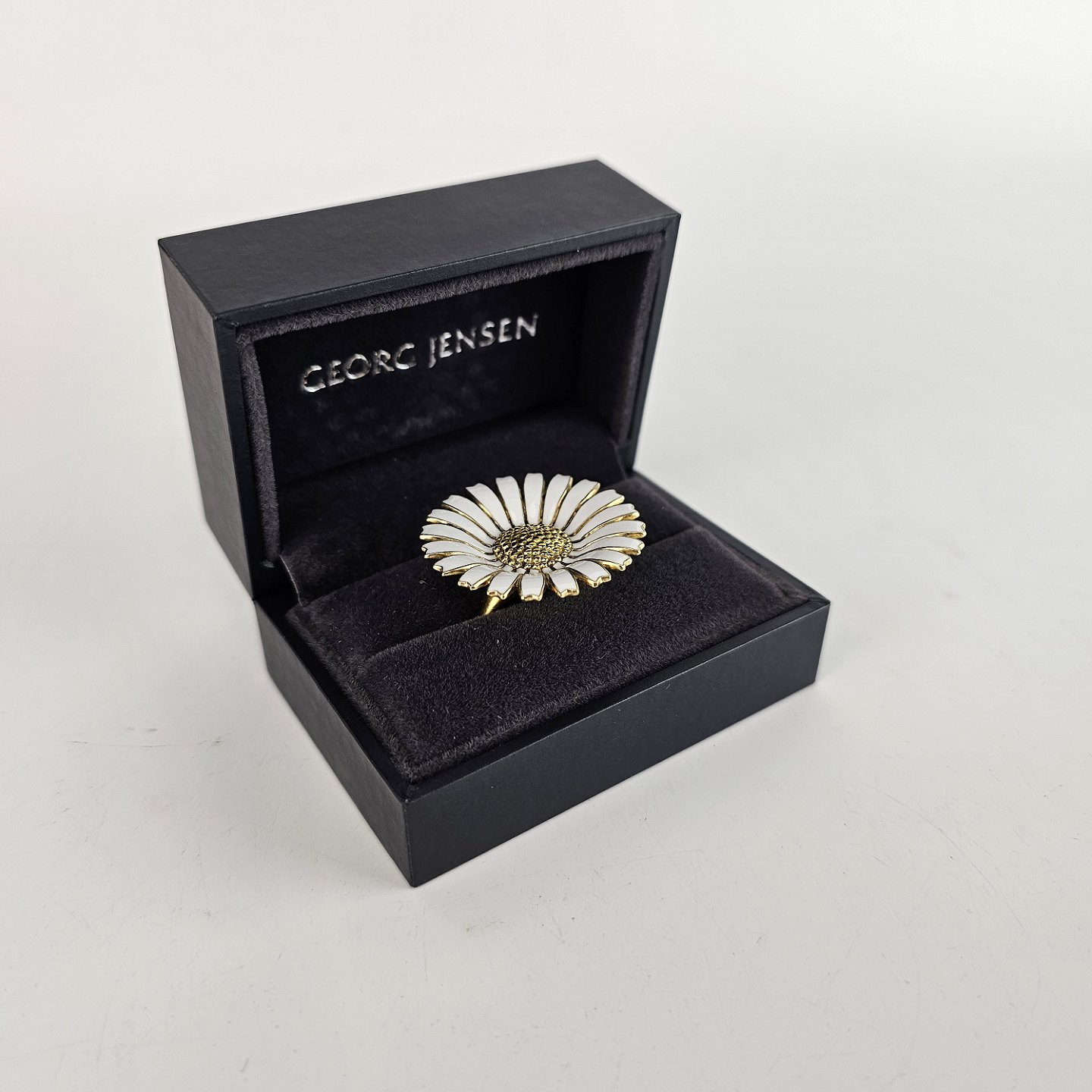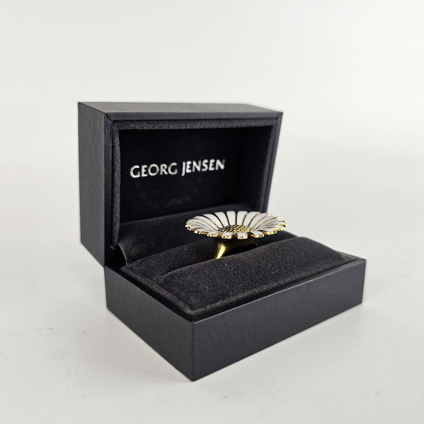 Stor Marguerit fingerring i forgyldt sølv
