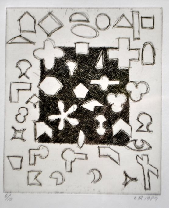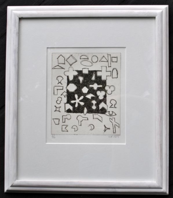 Ravn, Lars (1959 - ) Danmark: Komposition, 1989. Radering. Signeret: LR 1989. 6/10. H: 19,5 cm. B: 16,5 cm.