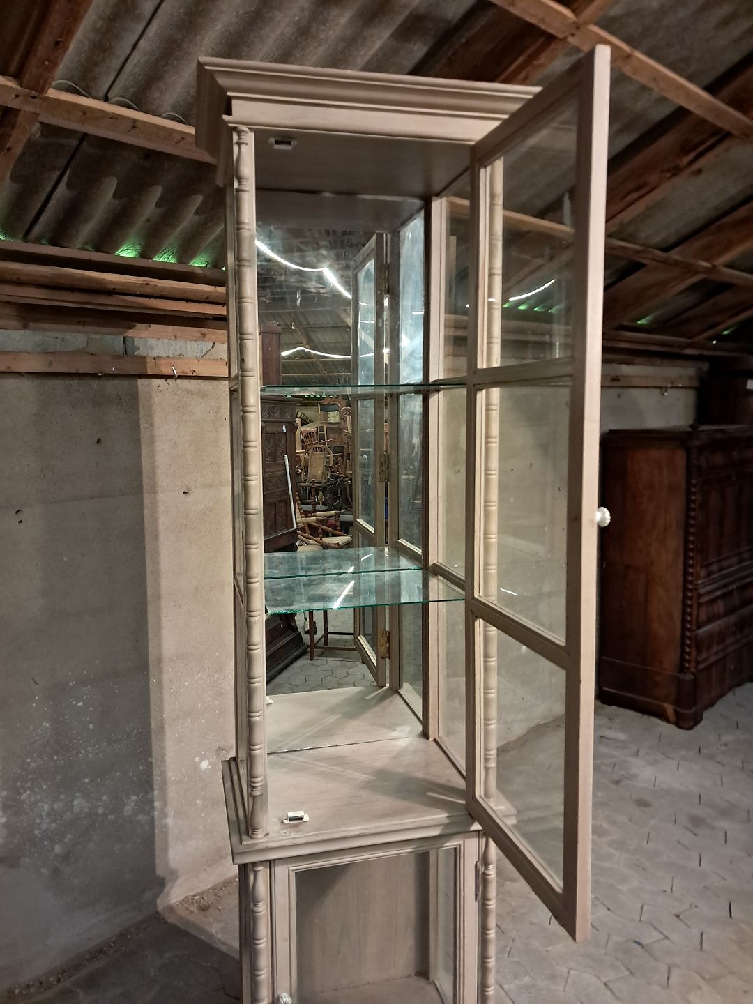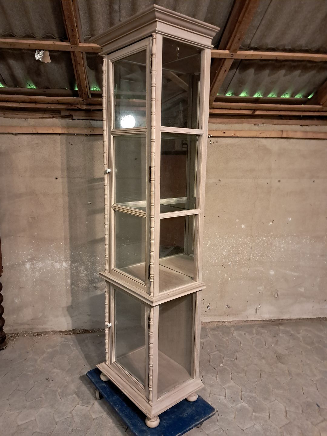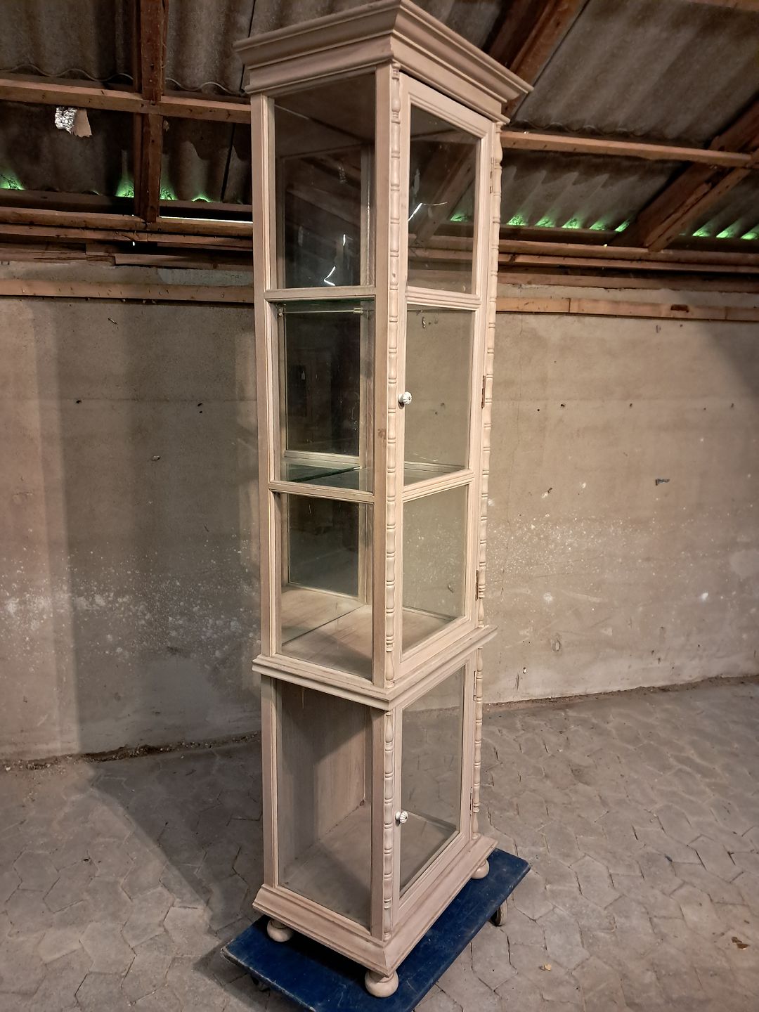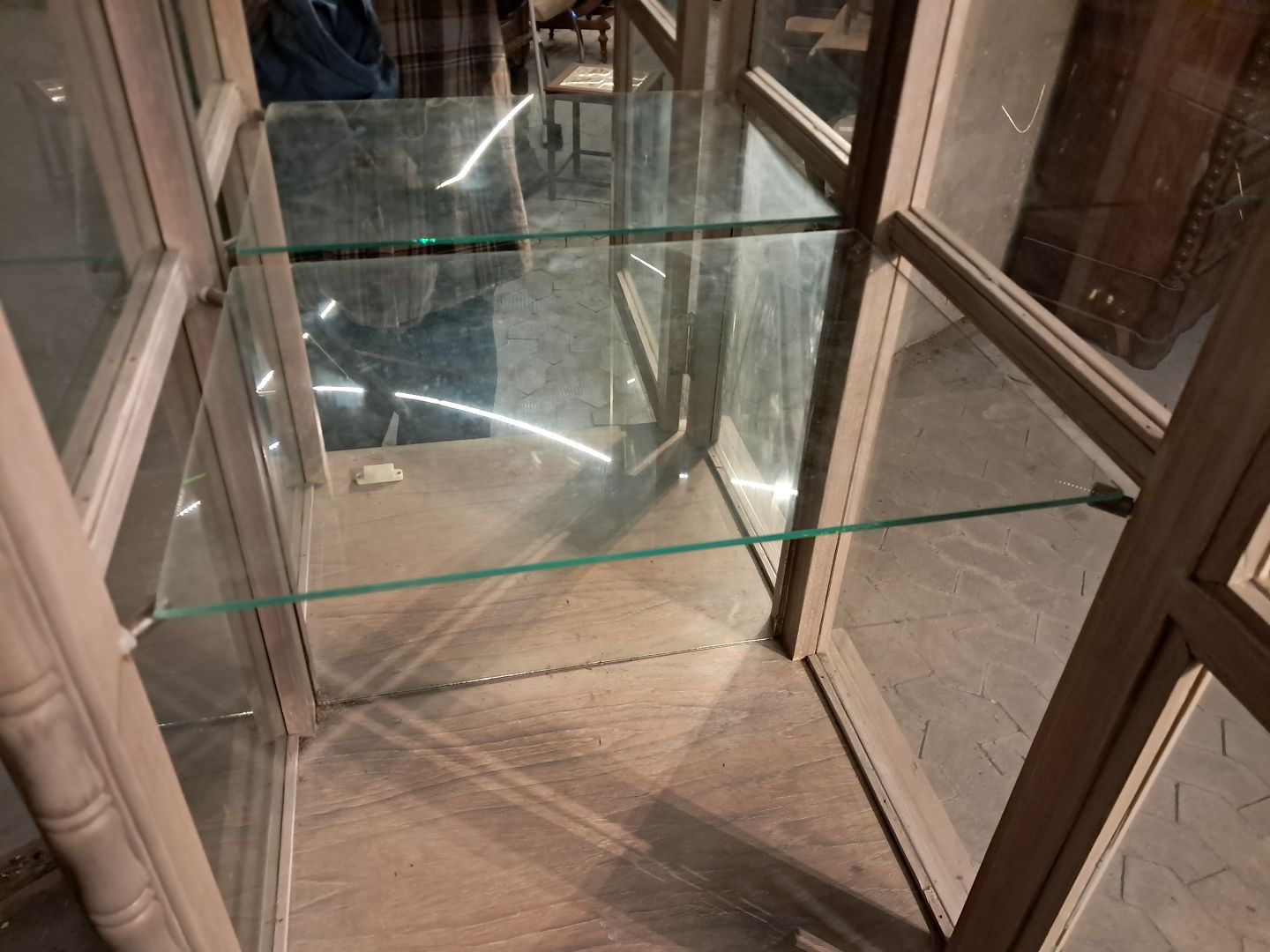 Det har brugsspor og malertape rester på glasset, hylderne kunne med fordel,
