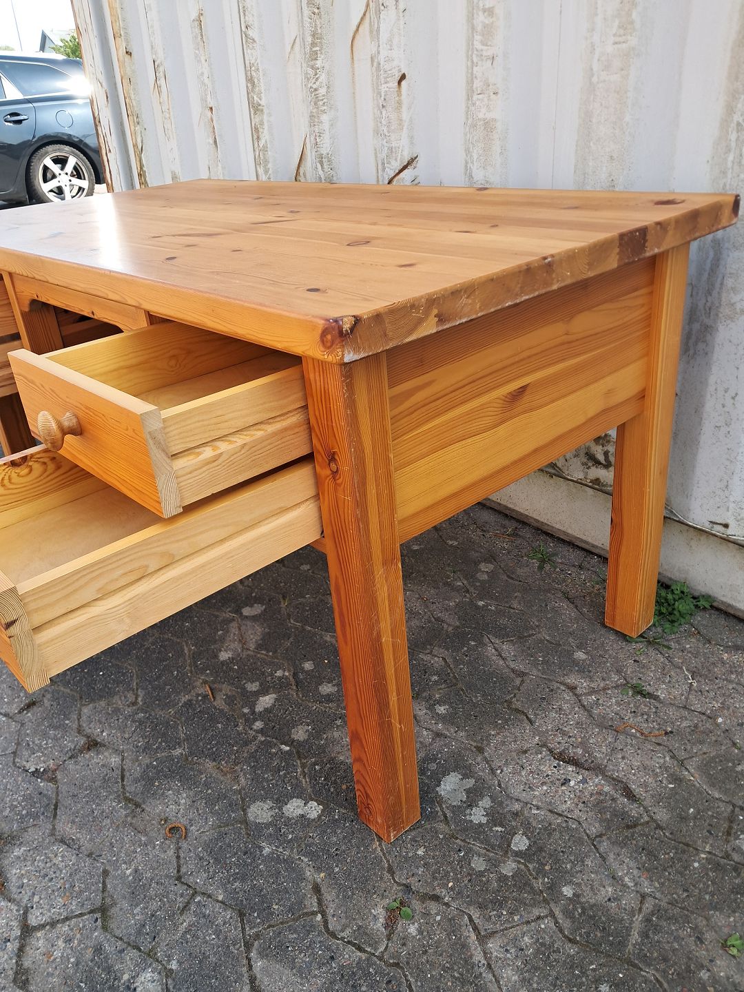 Skrivebord i massivt fyrretræ, fra 1980erne.