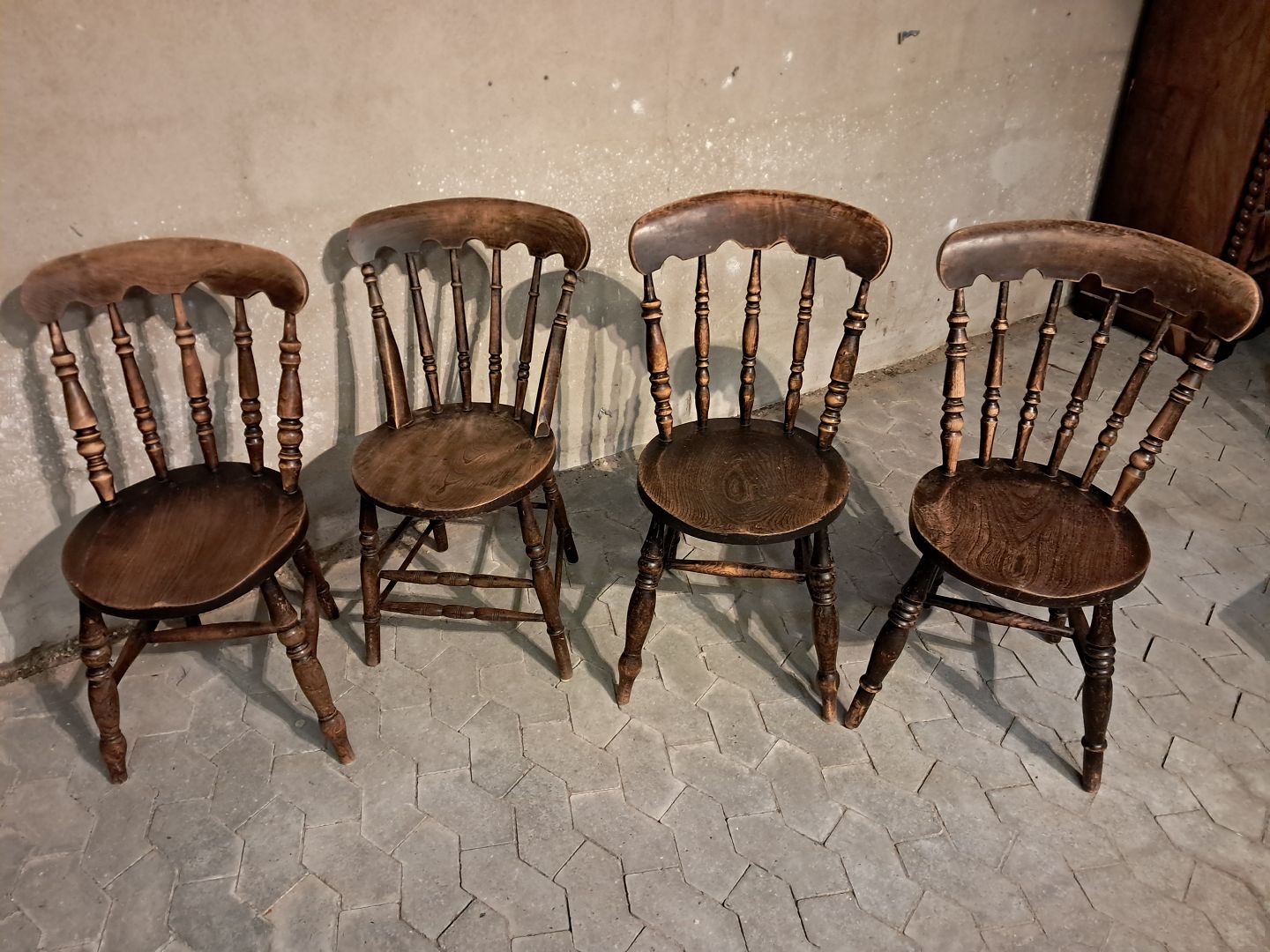4 Næsten ens stole i massivt egetræ, fra 1930erne.
