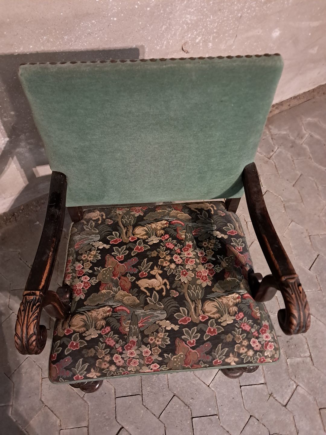 Armstol i massivt egetræ, fra 1930erne.