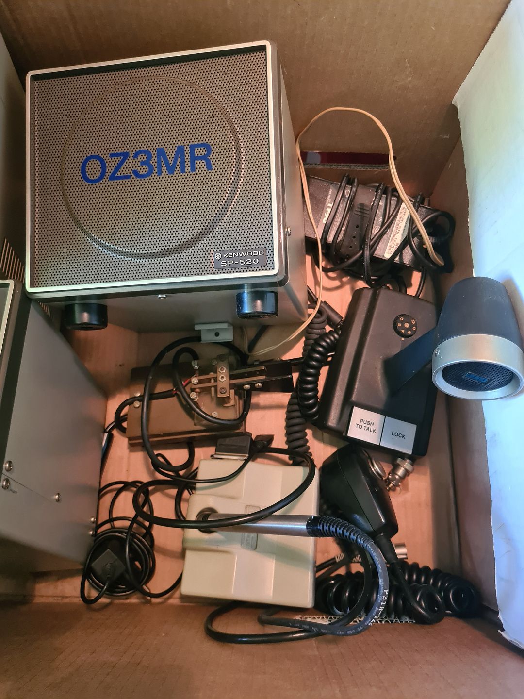 Flyttekasse med utestet Kenwood radioudstyr. TS-520 tænder og lysene virker, men har ikke været testet udover det eller sammen med de andre dele i kassen. Alt på billederne medfølger.