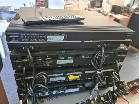 B&O anlæg fra 7000 serien i sølv/sort. Delvist til restaurering/reservedele. Beomaster 7000 virker fint. Beomaster CD virker fint. Beocord lyser og skuffen virker, men ikke funktionerne vedrørende afspilning af kasettebånd. Beogram pick-up armen flytter sig ikke, og skiven drejer heller ikke. Ældre fjernbetjening medfølger.
