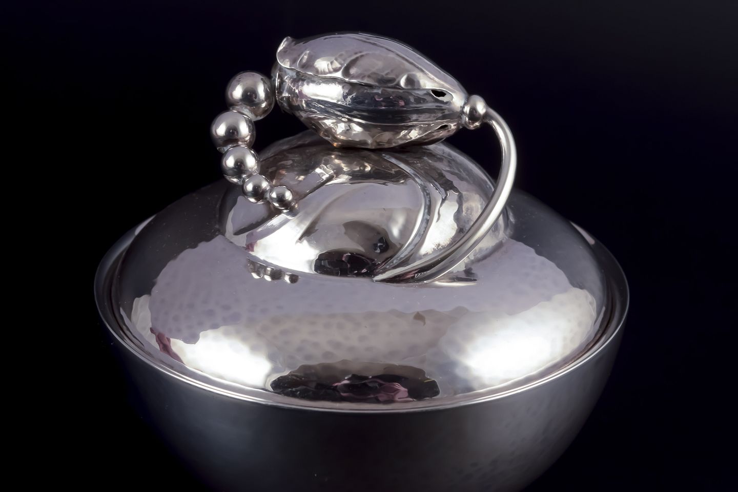 Georg Jensen Blossom sugar bowl in hand hammered sterling silver.