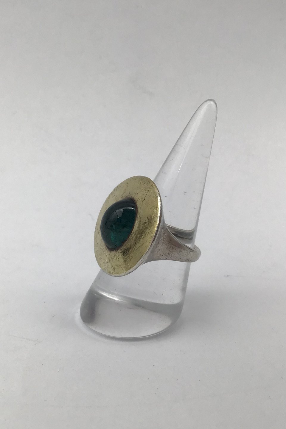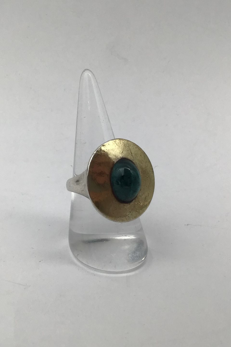 Hans Hansen Sterling Silver / Gold Modern Ring No. 51 (Cyan Aquamarine) Measures Ring Size 54 (US 7) Weight 15.86 gr (0.56 oz)