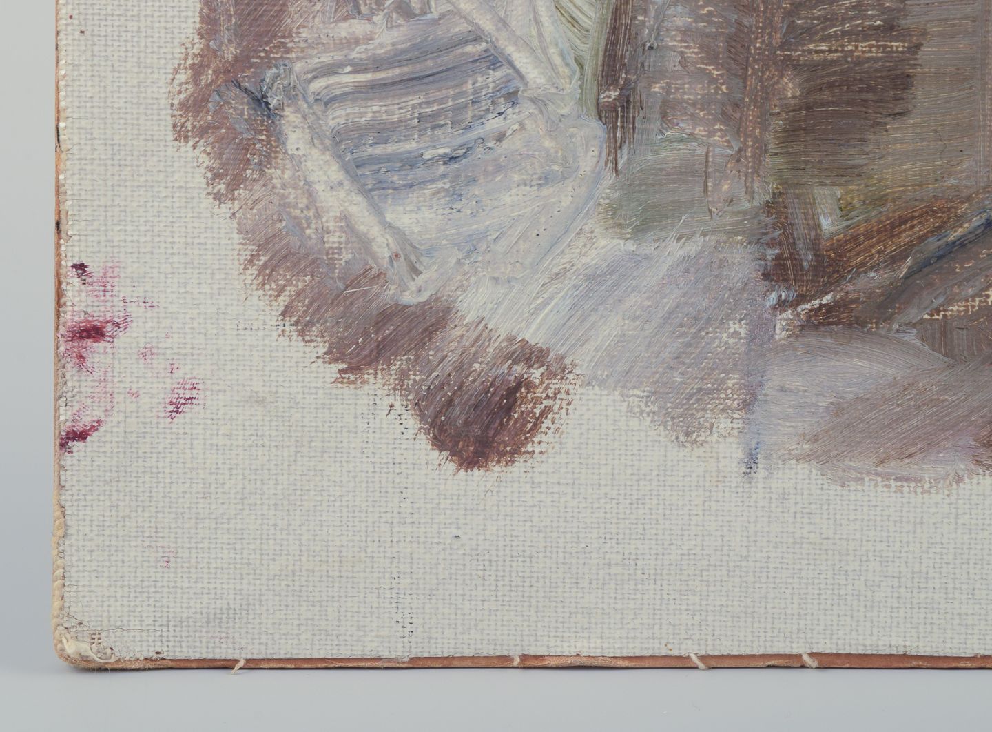 Olie på lærred lagt på malerplade.