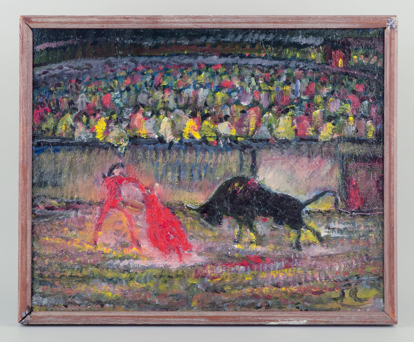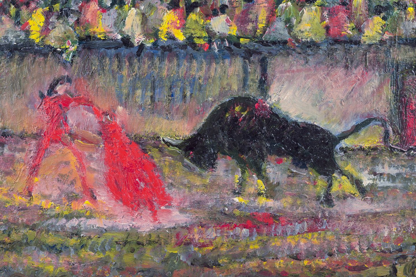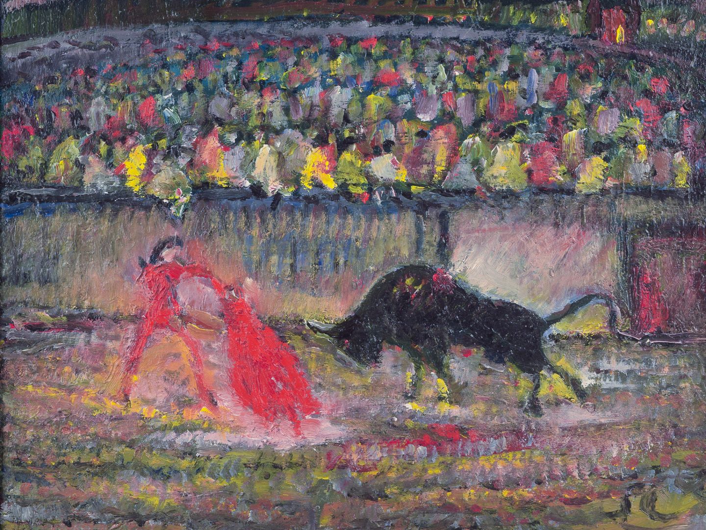 Motif of matador in bullfight arena.