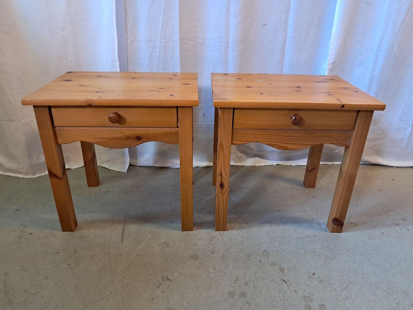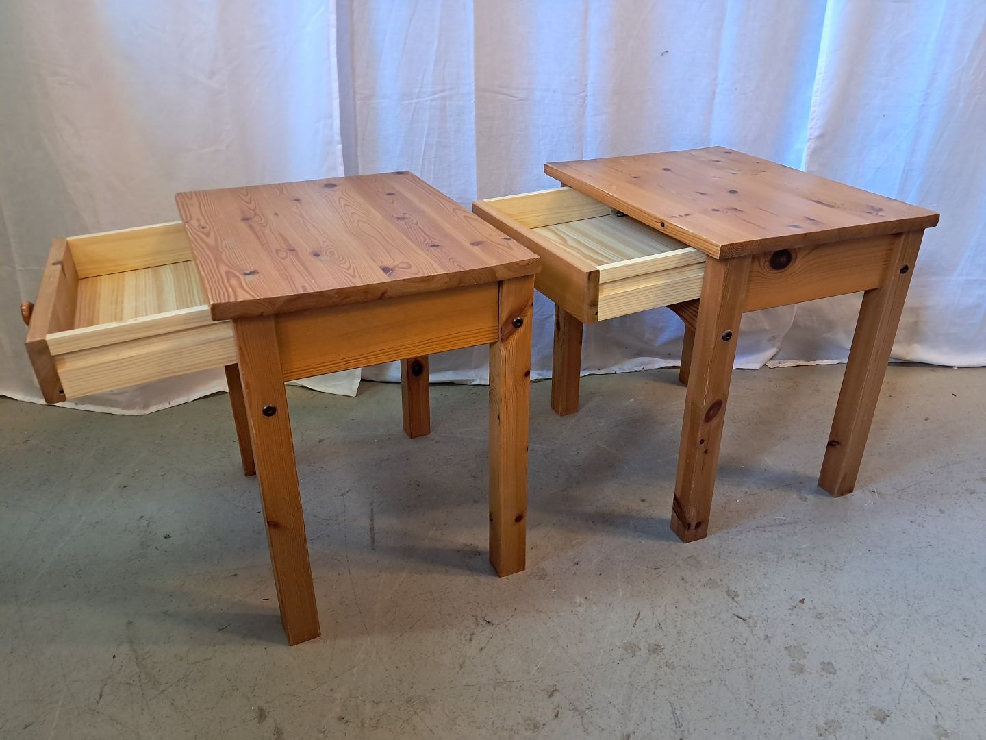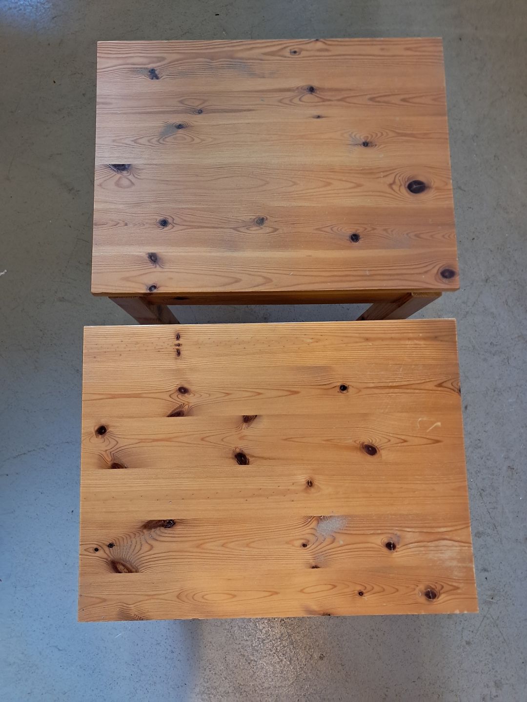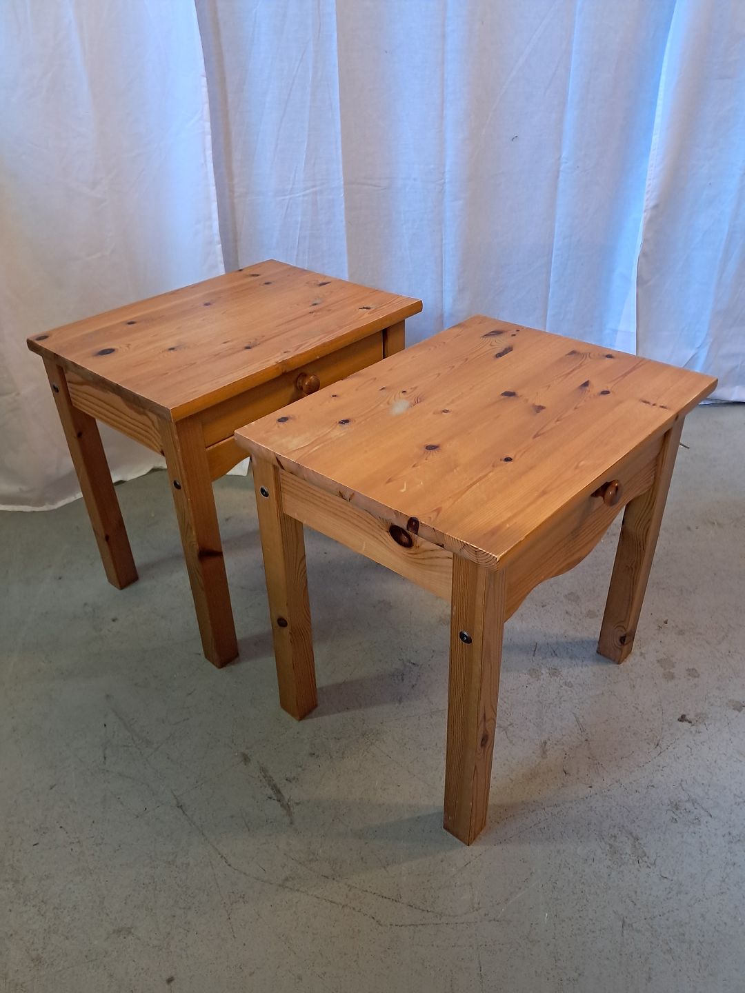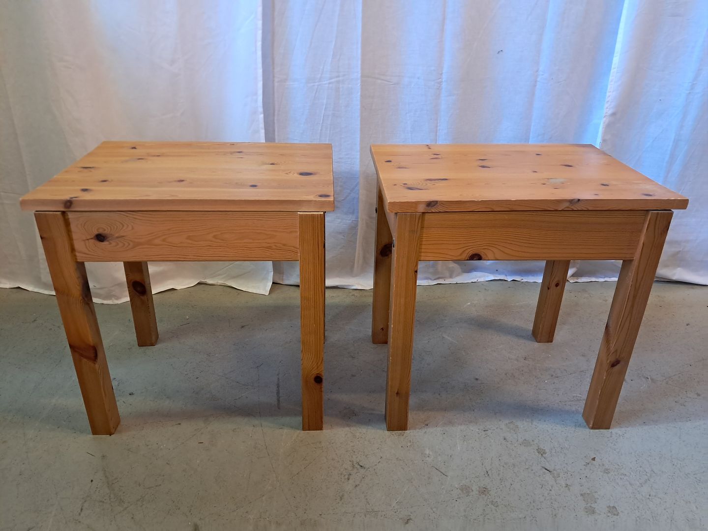 2 Sideborde i massivt fyrretræ, fra 1980-1990erne.