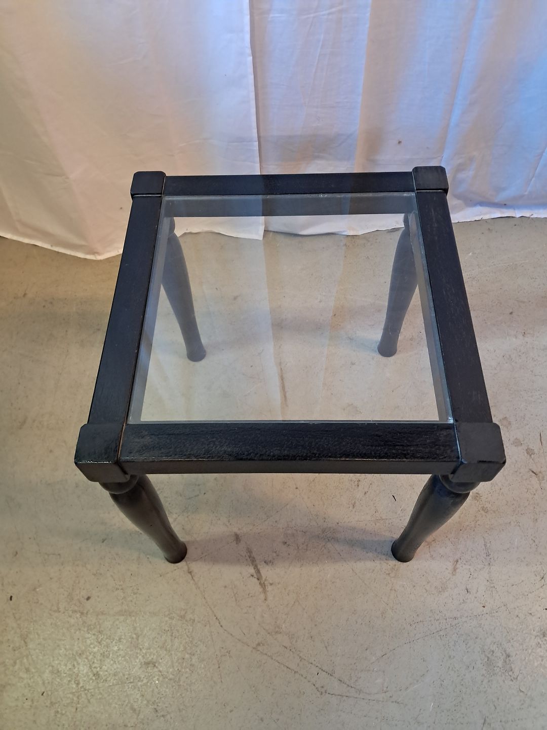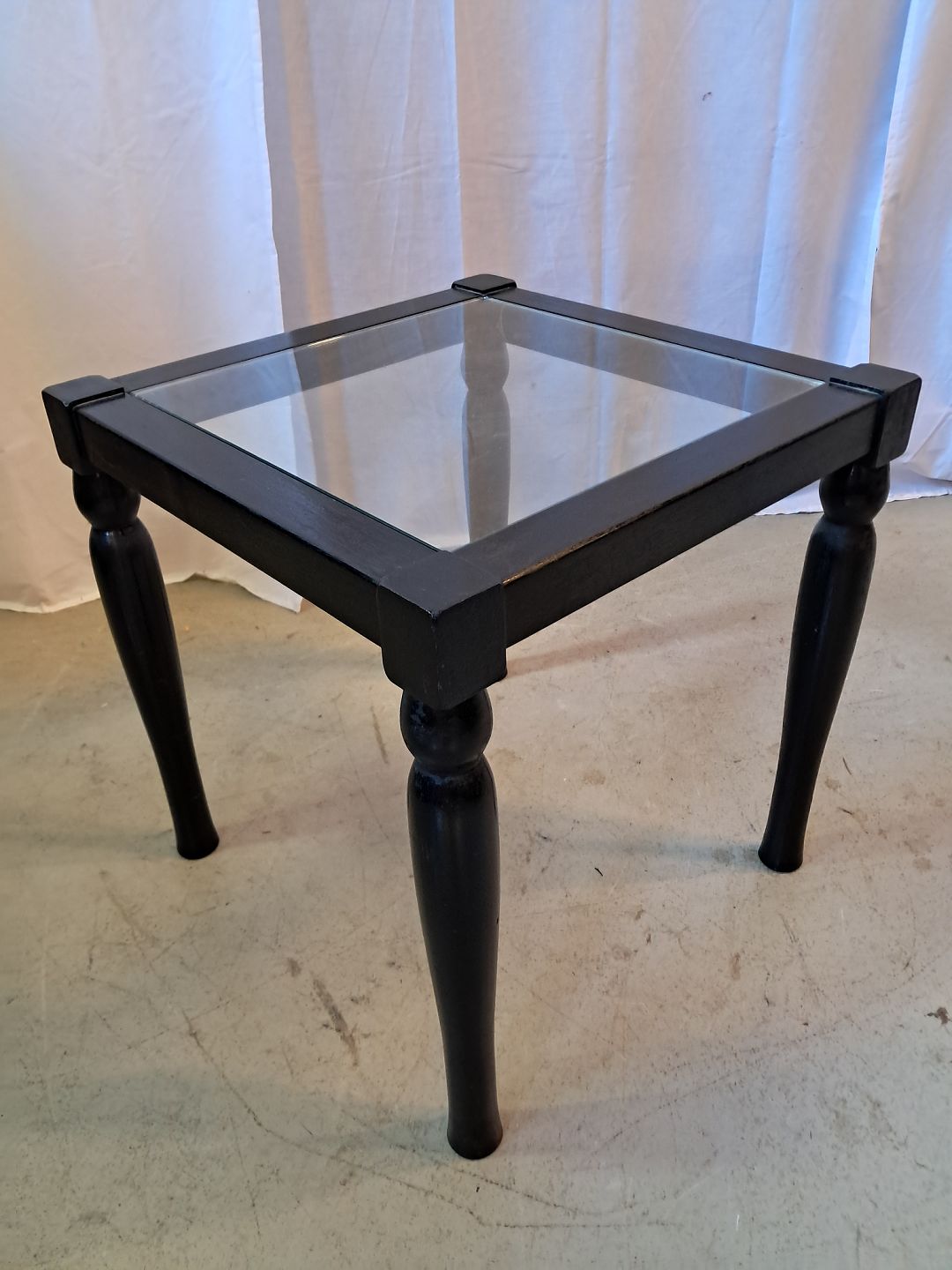 Bord i malet massivt træ med glasplade, fra 2000erne.