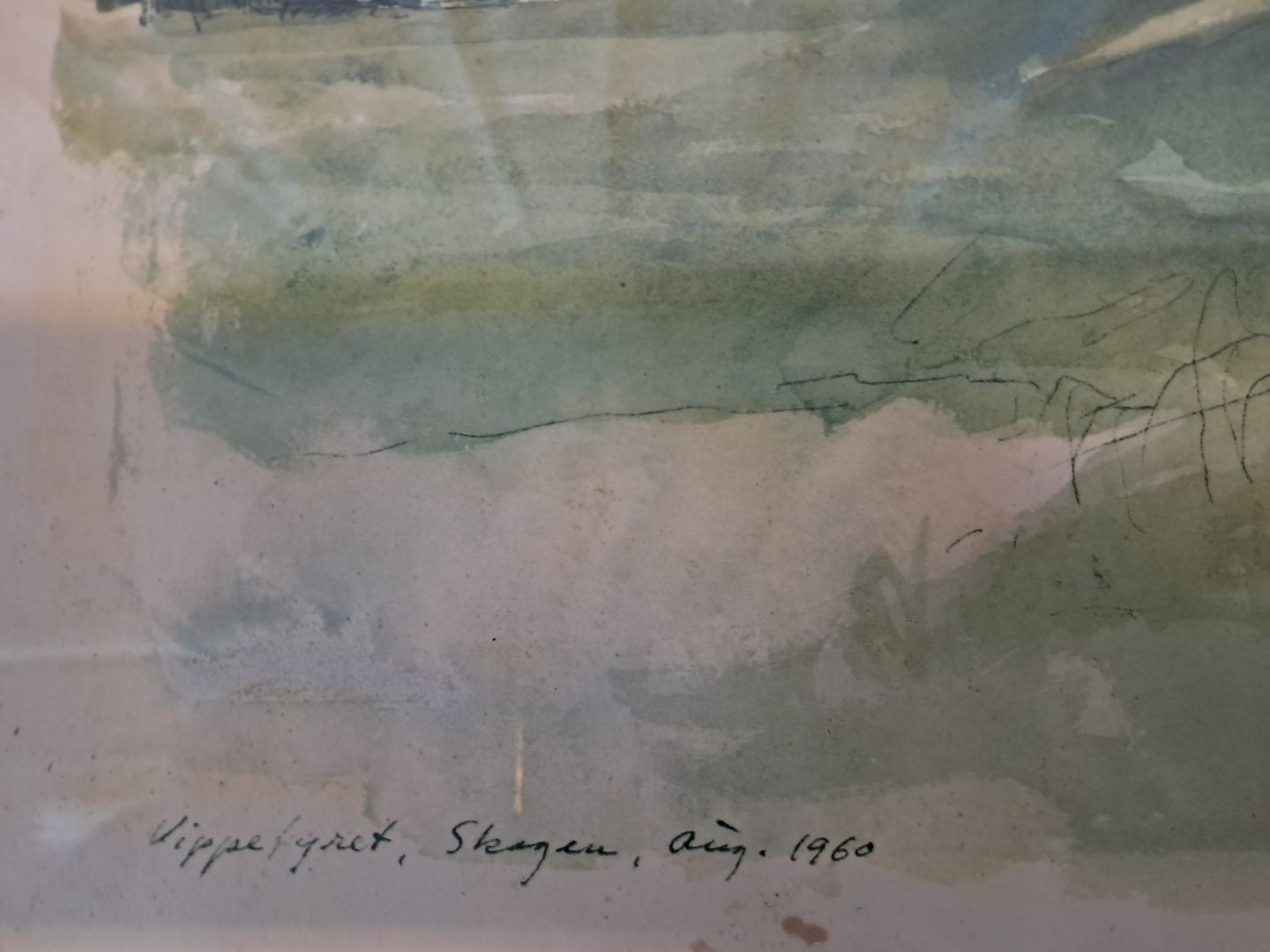 Tryk i ramme af fyrretræ med glas, fra 1960erne.