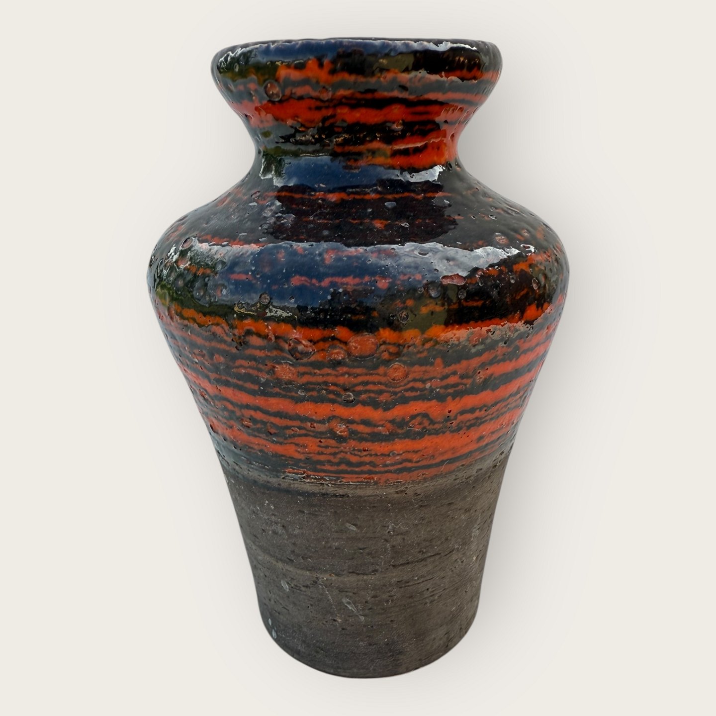 Johgus, Retro vase i orange og brun, Højde 17cm, pæn stand.