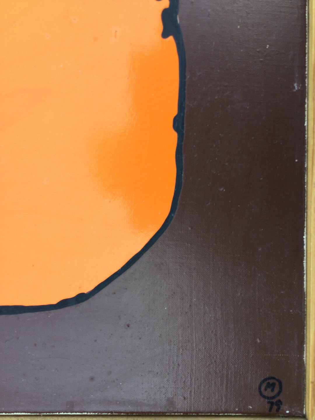 Sign.: Monogram 79 samt F. Moe 1979 bagpå blindramme,