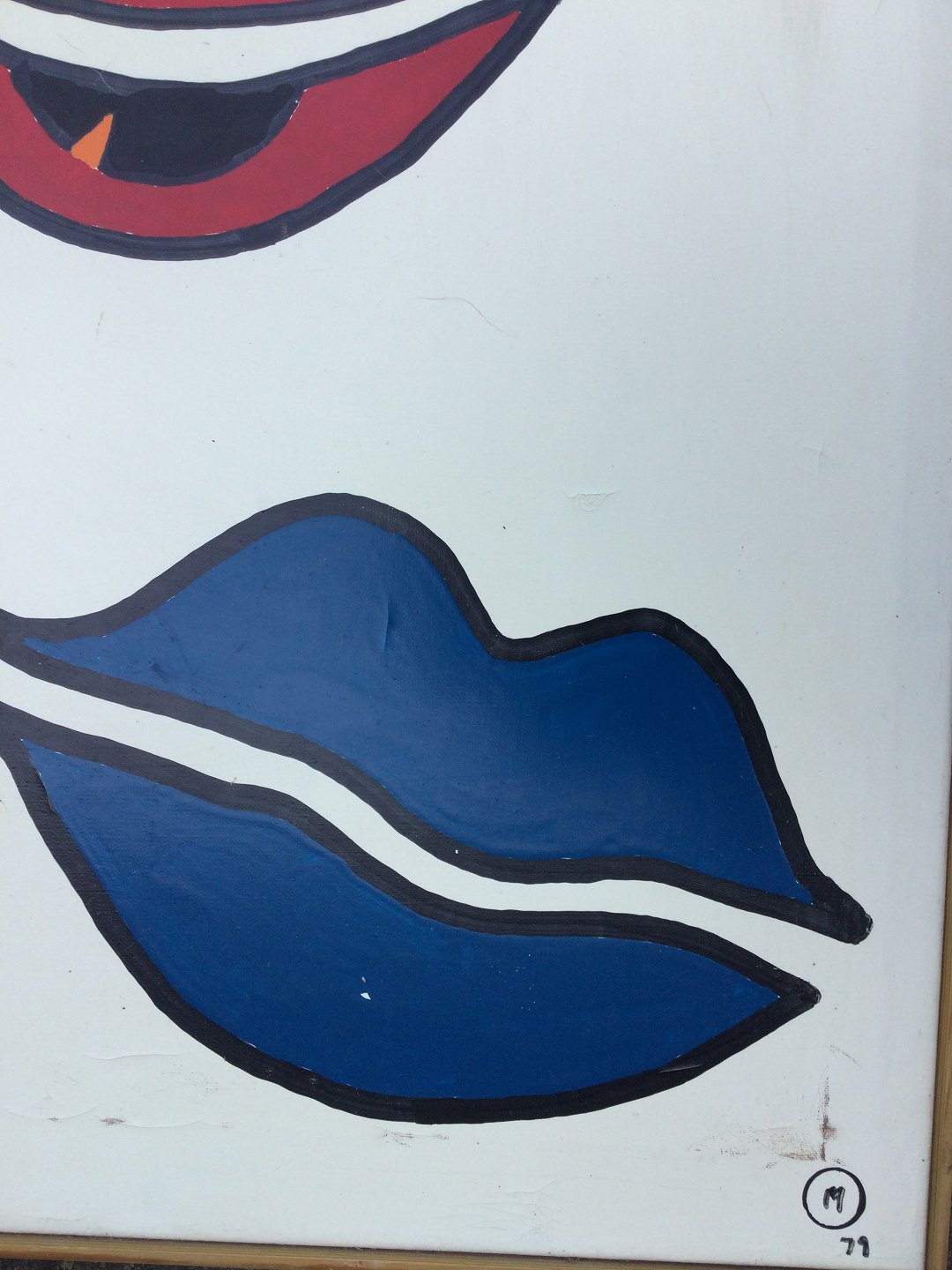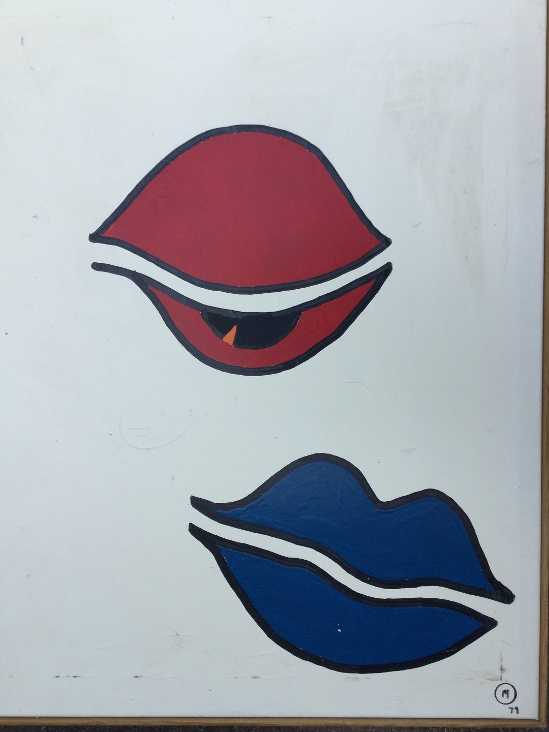 Maleri af Flemming Moe - Komposition med læber 1979.